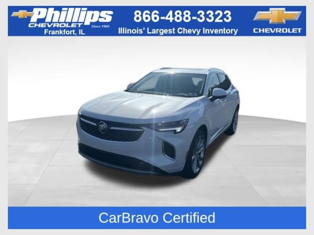 CarBravo Certified, Leather Seats, AWD, Panoramic Roof, Backup Camera, Remote Start, Pwr Dr Seat, Head-Up Display, Navigation, Bose Audio, Side Blind Zone Alert, Heated Seats, Heated Steering Wheel, Ventilated Seats, Memory Seating, Power Liftgate, Apple CarPlay, 20 Wheels, Carfax Buyback Guarantee, Envision Avenir, 4D Sport Utility, 2.0L Turbocharged, 9-Speed Automatic, AWD, White Frost Tricoat, Whisper Beige w/Ebony Accents w/Front Bucket Seats, 4-Wheel Disc Brakes, 8-Way Power Driver Seat Adjuster, ABS brakes, AM/FM radio: SiriusXM, Apple CarPlay/Android Auto, Auto High-beam Headlights, Auto-dimming door mirrors, Auto-dimming Rear-View mirror, Automatic temperature control, Bose Premium 9-Speaker Audio System Feature, Brake assist, Bumpers: body-color, Compass, Driver door bin, Driver vanity mirror, Dual front impact airbags, Dual front side impact airbags, Electronic Stability Control, Emergency communication system: OnStar and Buick connected services capable, Exterior Parking Camera Rear, Following Distance Indicator, Forward Collision Alert, Four wheel independent suspension, Front anti-roll bar, Front Bin Center Console USB Ports, Front Bucket Seats, Front Center Armrest, Front dual zone A/C, Front Passenger 8-Way Power Seat Adjuster, Front Pedestrian Braking, Front reading lights, Fully automatic headlights, Garage door transmitter, HD Radio, Heads-Up Display, Heated door mirrors, Heated Driver & Front Passenger Seats, Heated Rear Outboard Seating Positions, Heated steering wheel, Illuminated entry, IntelliBeam Headlamp Control w/Auto High Beam, Knee airbag, Lane Keep Assist w/Lane Departure Warning, Low tire pressure warning, Memory Card Receptacle Audio System Feature, Memory seat, Navigation System, Occupant sensing airbag, Outside temperature display, Overhead airbag, Overhead console, Passenger door bin, Passenger vanity mirror, Perforated Leather-Appointed Seat Trim, Power door mirrors, Power Liftgate, Power moonroof, Preferred Equipment Group 1SU, Radio data system, Radio: Buick Infotainment System AM/FM w/Nav, Rear anti-roll bar, Rear reading lights, Rear seat center armrest, Rear window defroster, Rear window wiper, Remote keyless entry, Security system, SiriusXM Radio, Speed control, Split folding rear seat, Spoiler, Steering wheel mounted audio controls, Telescoping steering wheel, Tilt steering wheel, Traction control, Trip computer, USB Charging-Only Ports, Variably intermittent wipers, Ventilated Driver & Front Passenger Seats, Wheels: 20 Aluminum w/Avenir Pearl Nickel Finish, Wireless Apple CarPlay/Wireless Android Auto. 2023 Buick Envision White Frost Tricoat Avenir 4D Sport Utility AWD 9-Speed Automatic 22/29 City/Highway MPG 2.0L Turbocharged
