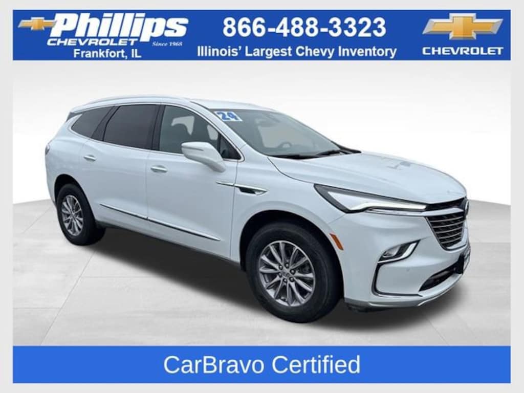 CarBravo Certified, Leather Seats, AWD, Low Miles, Backup Camera, Remote Start, 7 Passenger Seating, Pwr Dr Seat, Side Blind Zone Alert, Heated Seats, Heated Steering Wheel, Power Liftgate, Apple CarPlay, Aluminum Wheels, Carfax Buyback Guarantee, Enclave Essence, 4D Sport Utility, 3.6L V6 SIDI VVT, 9-Speed Automatic, AWD, Summit White, Dark Galvanized w/Ebony Accents w/Perforated Leather-Appointed Seat Trim, 18 Aluminum Wheels, 3rd row seats: split-bench, 4-Wheel Disc Brakes, 6-Speaker Audio System Feature, 6-Way Power Front Passenger Seat Adjuster, 7-Passenger Seating, 8-Way Power Driver Seat Adjuster, ABS brakes, AM/FM radio: SiriusXM with 360L, Auto High-beam Headlights, Auto-dimming door mirrors, Auto-dimming Rear-View mirror, Automatic temperature control, Brake assist, Bumpers: body-color, Compass, Electronic Stability Control, Four wheel independent suspension, Front Bucket Seats, Front dual zone A/C, Fully automatic headlights, Garage door transmitter, Heated door mirrors, Heated Driver & Front Passenger Seats, Heated steering wheel, Illuminated entry, Leather steering wheel, Outside temperature display, Overhead console, Passenger door bin, Perforated Leather-Appointed Seat Trim, Power door mirrors, Power Driver Lumbar Control Seat Adjuster, Power Liftgate, Power Passenger Lumbar Control Seat Adjuster, Preferred Equipment Group 1SL, Premium audio system: Buick Infotainment System, Radio data system, Radio: Buick Infotainment System AM/FM Stereo, Rear air conditioning, Rear window defroster, Rear window wiper, Remote keyless entry, Security system, SiriusXM w/360L, Speed control, Speed-sensing steering, Spoiler, Steering wheel mounted audio controls, Tachometer, Telescoping steering wheel, Tilt steering wheel, Traction control, Trip computer, Turn signal indicator mirrors, Variably intermittent wipers, Vehicle Health Management, Voltmeter, Wireless Apple CarPlay/Wireless Android Auto. 2024 Buick Enclave Summit White Essence 4D Sport Utility AWD 9-Speed Automatic 17/25 City/Highway MPG 3.6L V6 SIDI VVTRecent Arrival!Certification Program Details: Type your description hereWith the internet today, a great value shouldnât be hard to find. Here at Phillips Chevrolet we do the research for you. We monitor the market daily to ensure our customers are getting the best value achievable. We price all of our vehicles to make the buying process as simple and easy as possible. Our internet prices are just one factor that makes us the #1, #2, and out to be the #3 Chevrolet dealerships in Illinois. The #2 Chevy dealership in Illinois is conveniently located just a one block south of 80/94, at 17730 S Torrence Avenue in Lansing, IL 60438.