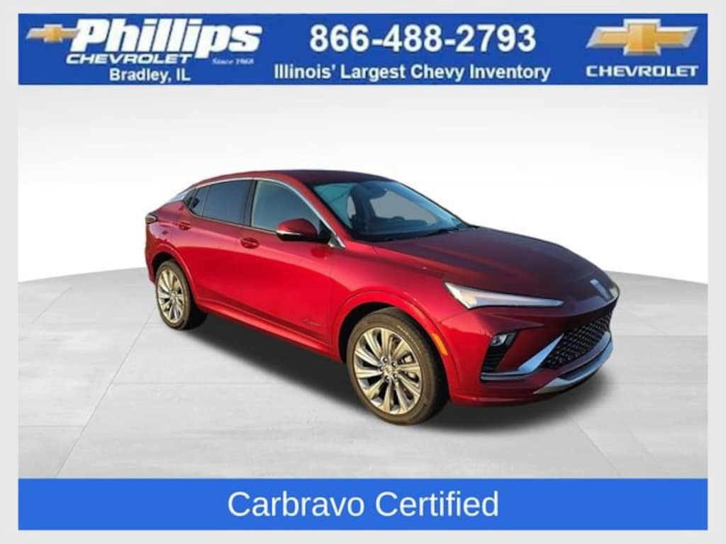 Carbravo Certified, Certifed Multi Point Inspection, One Owner, Carfax- Accident Free, Apple CarPlay, Keyless Entry, SUNROOF, Adaptive Cruise Control (ACC), Back Up Camera, Blind Spot Monitoring, Bluetooth, Heated seats, Heated steering wheel, Forward Collision Alert, Power Locks, Power Seating, Power Windows, Push Button Start, Remote start, TURBO!, 19 Wheels, Carfax Buyback Guarantee, Envista Avenir, 4D Sport Utility, ECOTEC 1.2L Turbo, 6-Speed Automatic, FWD, Cinnabar Metallic, Ebony Seats Interior With Terracotta Stitching Leather, 2 USB Ports (1 Type-A, 1 Type-C), 2-Way Power Driver Lumbar Control, 3.50 Final Drive Axle Ratio, 4-Way Manual Passenger Seat Adjuster, 4-Wheel Disc Brakes, 8-Way Power Driver Seat Adjuster, ABS brakes, Adaptive Cruise Control, Air Conditioning, Auto-dimming Rear-View mirror, Automatic temperature control, Avenir Advanced Safety Package, Brake assist, Compass, Dual front impact airbags, Dual front side impact airbags, Electronic Stability Control, Emergency communication system: OnStar, Exterior Parking Camera Rear, Front anti-roll bar, Front Bucket Seats, Front Center Armrest, Front Intermittent Rainsense Wipers, Front wheel independent suspension, Fully automatic headlights, Heated Driver & Front Passenger Seats, Heated steering wheel, Illuminated entry, Lane Change Alert w/Side Blind Zone Alert, Low tire pressure warning, Occupant sensing airbag, Outside temperature display, Overhead airbag, Overhead console, Panic alarm, Passenger vanity mirror, Perforated Leather-Appointed Seat Trim, Power door mirrors, Power Liftgate, Power steering, Power Tilt-Sliding Moonroof w/Manual Sunshade, Power windows, Power-Adjustable Outside Heated Mirrors, Preferred Equipment Group G04, Premium 6-Speaker Audio System Feature, Radio data system, Radio: AM/FM Stereo Audio System, Rear Cross Traffic Alert, Rear Park Assist, Rear seat center armrest, Rear window defroster, Remote keyless entry, Security system, SiriusXM, Speed control, Split folding rear seat, Steering wheel mounted audio controls, Tachometer, Telescoping steering wheel, Tilt steering wheel, Traction control, Trip computer, Variably intermittent wipers, Wheels: 19 Avenir Premium Pearl Nickel Aluminum, Wireless Apple CarPlay/Wireless Android Auto. CARFAX One-Owner. Clean CARFAX. Certified. Cinnabar Metallic 2024 Buick Envista Avenir FWD 6-Speed Automatic ECOTEC 1.2L TurboRecent Arrival! Odometer is 10146 miles below market average! 28/32 City/Highway MPGCertification Program Details: Type your description hereWith the internet today, a great value shouldn't be hard to find. Here at Phillips Chevrolet we do the research for you. We monitor the market daily to ensure our customers are getting the best value achievable. We price all of our vehicles to make the buying process as simple and easy as possible. Our internet prices are just one factor that makes us the #1, #2, and out to be the #3 Chevrolet dealerships in Illinois. The future #3 Chevy dealership in Illinois is conveniently located at 1400 Locke Drive, the corner of I-57 & IL 50, in Bradley/Bourbonnais, IL 60914.