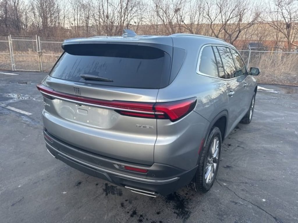 Low Miles, CarBravo Certified, AWD, Backup Camera, Remote Start, 7 Passenger Seating, Pwr Dr Seat, Forward Collision Alert, Navigation, Bose Audio, Side Blind Zone Alert, Rear Cross Traffic Alert, Lane Departure Warning, Lane Change Alert, Lane Keep Assist, Rear Park Assist, Adaptive Cruise Control, Heated Seats, Heated Steering Wheel, Power Liftgate, Apple CarPlay, 20 Wheels, Carfax Buyback Guarantee, Enclave Preferred, 4D Sport Utility, 2.5L DOHC, 8-Speed Automatic, AWD, Moonstone Gray Metallic, Ebony w/Sky Cool Gray & Ebony Accents w/Leatherette Seat Trim, 3rd row seats: split-bench, 4-Wheel Disc Brakes, ABS brakes, Air Conditioning, AM/FM radio: SiriusXM with 360L, Auto High-beam Headlights, Auto-dimming door mirrors, Auto-dimming Rear-View mirror, Automatic temperature control, Bose Premium 12-Speaker Audio System, Brake assist, Bumpers: body-color, Compass, Deleted OnStar Basics, Driver 4-Way Power Lumbar Seat Adjuster, Driver 8-Way Power Seat Adjuster, Driver door bin, Driver vanity mirror, Dual front impact airbags, Dual front side impact airbags, Electronic Stability Control, Emergency communication system: OnStar and Buick connected services capable, Four wheel independent suspension, Front anti-roll bar, Front Bucket Seats, Front Center Armrest, Front dual zone A/C, Front Passenger 4-Way Power Lumbar Seat Adjuster, Front Passenger 6-Way Power Seat Adjuster, Front reading lights, Fully automatic headlights, Heated door mirrors, Heated Driver and Front Passenger Seats, Heated steering wheel, Illuminated entry, Leather steering wheel, Leatherette Seat Trim, Low tire pressure warning, Navigation System, Occupant sensing airbag, Outside temperature display, Overhead airbag, Overhead console, Passenger door bin, Passenger vanity mirror, Power door mirrors, Power driver seat, Power Liftgate, Power passenger seat, Power steering, Power windows, Preferred Equipment Group 1SD, Premium audio system: Buick Infotainment System, Radio data system, Radio: Infotainment Center, Rear air conditioning, Rear anti-roll bar, Rear reading lights, Rear side impact airbag, Rear window defroster, Rear window wiper, Remote keyless entry, Security system, SiriusXM with 360L Trial Subscription, Speed control, Speed-sensing steering, Spoiler, Steering wheel mounted audio controls, Tachometer, Telescoping steering wheel, Tilt steering wheel, Traction control, Trip computer, Turn signal indicator mirrors, Variably intermittent wipers, Voltmeter, Wheels: 20 Alloy with Medium Android Finish, Wireless Apple CarPlay, Wireless Google Android Auto. 2025 Buick Enclave Moonstone Gray Metallic Preferred 4D Sport Utility AWD 8-Speed Automatic 19/24 City/Highway MPG 2.5L DOHC