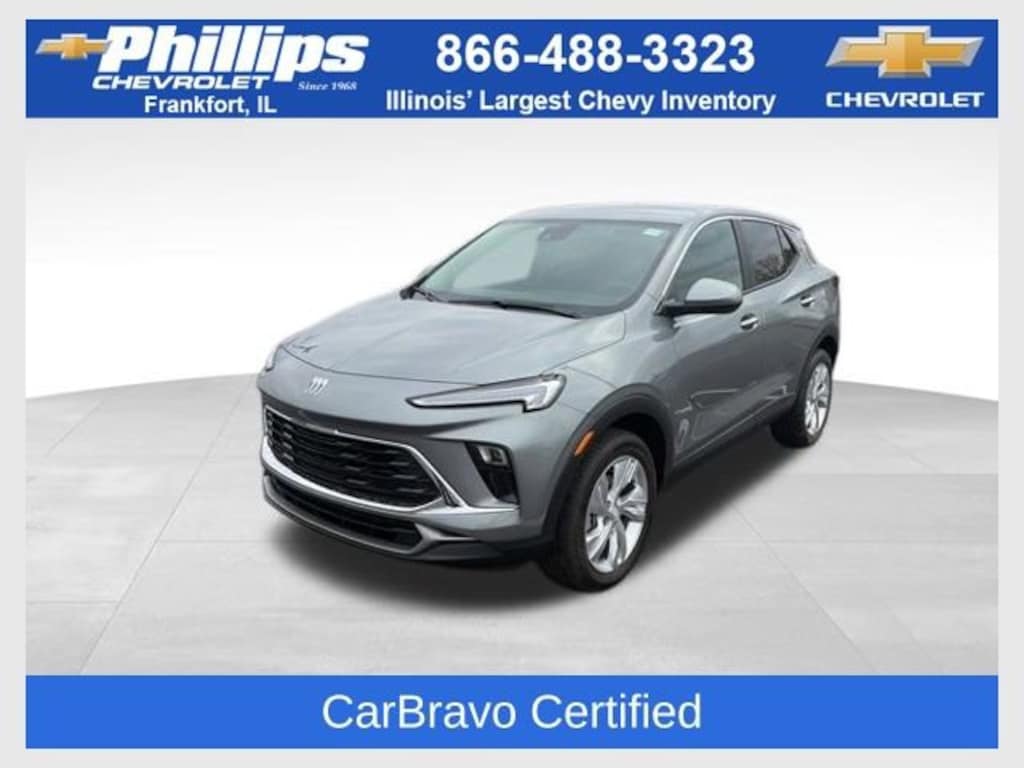 CarBravo Certified, AWD, Low Miles, Backup Camera, Pwr Dr Seat, Side Blind Zone Alert, Heated Seats, Heated Steering Wheel, Power Liftgate, Apple CarPlay, Aluminum Wheels, Carfax Buyback Guarantee, Encore GX Preferred, 4D Sport Utility, ECOTEC 1.3L Turbo, 9-Speed Automatic, AWD, Moonstone Gray Metallic, Ebony w/Ebony Accents w/Cloth with Leatherette Seat Trim, 2-Way Power Driver Lumbar Control, 4-Wheel Disc Brakes, 8-Way Power Driver Seat Adjuster, ABS brakes, Air Conditioning, Auto High-beam Headlights, Automatic temperature control, Brake assist, Bumpers: body-color, Cloth with Leatherette Seat Trim, Comfort Package, Compass, Electronic Stability Control, Enhanced Performance 7-Speaker System with Amplifier, Flat-Folding Front Passenger Seatback, Front reading lights, Fully automatic headlights, Heated door mirrors, Heated Driver and Front Passenger Seats, Heated Steering Wheel, Illuminated entry, Outside temperature display, Overhead console, Passenger door bin, Power door mirrors, Power Liftgate, Preferred Equipment Group 1SB, Radio data system, Radio: AM/FM Audio System, Rear Center Armrest, Rear window defroster, Rear window wiper, Remote keyless entry, Ride and Handling Suspension, Security system, SiriusXM Trial Subscription, Speed control, Speed-sensing steering, Split folding rear seat, Spoiler, Steering wheel mounted audio controls, Tachometer, Telescoping steering wheel, Tilt steering wheel, Traction control, Trip computer, Variably intermittent wipers, Wheels: 18 Bright Silver Painted Aluminum, Wireless Apple CarPlay/Wireless Android Auto. 2026 Buick Encore GX Moonstone Gray Metallic Preferred 4D Sport Utility AWD 9-Speed Automatic 26/28 City/Highway MPG ECOTEC 1.3L Turbo