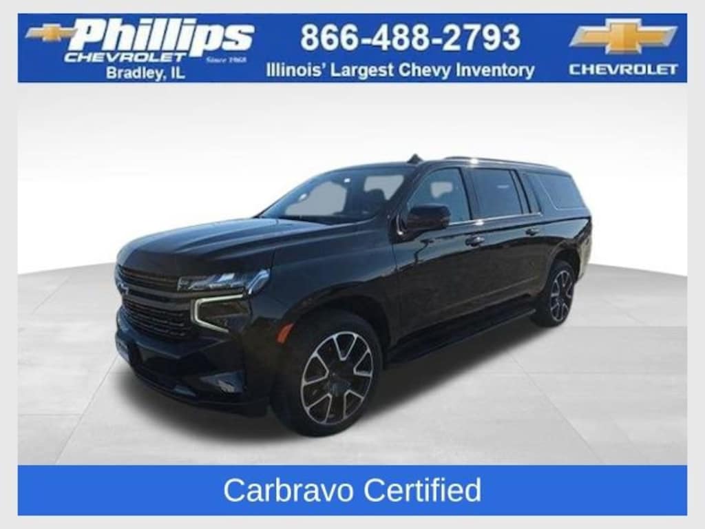 Carbravo Certified, Apple CarPlay, Android Auto, Keyless Entry, 4WD, Back Up Camera, Blind Spot Monitoring, Bluetooth, Heated seats, Heated steering wheel, Forward Collision Alert, Lane Assist, Panoramic Roof, Power lift gate, Power Locks, Power Seating, Power Windows, Push Button Start, Rear Traffic Alert, Remaining factory warranty, Remote start, Front Park Assist, Rear Park Assist, Lane Change Alert, Carfax Buyback Guarantee, Suburban RST, 4D Sport Utility, EcoTec3 6.2L V8, 10-Speed Automatic with Overdrive, 4WD, Black, Jet Black/Victory Red Leather, 10-Way Power Driver & Passenger Seat Adjusters, 1st & 2nd Row Color-Keyed Carpeted Floor Mats, 2nd Row Pwr Release 60/40 Split-Folding Bench Seat, 3.23 Rear Axle Ratio, 3rd Row 60/40 Power-Folding Split-Bench, 3rd row seats: split-bench, 4-Wheel Disc Brakes, ABS brakes, Apple CarPlay/Android Auto, Auto High-beam Headlights, Auto-Dimming Inside Rear-View Mirror, Auto-dimming Rear-View mirror, Automatic Stop/Start, Automatic temperature control, Bose 9-Speaker Stereo Audio System Feature, Brake assist, Bright Front & Rear Door Sill Plates, Bumpers: body-color, Color-Keyed Carpeting Floor Covering, Compass, Delay-off headlights, Driver & Front Outboard Passenger Airbags, Driver Alert Package, Driver door bin, Driver vanity mirror, Dual Exhaust System, Dual front impact airbags, Dual front side impact airbags, Dual-Pane Power Panoramic Sunroof, Electronic Stability Control, Emergency communication system: OnStar and Chevrolet connected services capable, Enhanced Driver Information Center, Floor Console w/Storage Area, Four wheel independent suspension, Front & Rear Park Assist, Front anti-roll bar, Front Bucket Seats, Front Center Armrest, Front dual zone A/C, Front reading lights, Fully automatic headlights, Garage door transmitter, Hands-Free Rear Power Programmable Liftgate, HD Surround Vision, Heated 2nd Row Outboard Seats, Heated door mirrors, Heated Driver & Front Passenger Seats, Heated Steering Wheel, Illuminated entry, Infotainment Display, Lane Change Alert w/Side Blind Zone Alert, Leather steering wheel, Leather-Wrapped Steering Wheel, LED Daytime Running Lamps, Low tire pressure warning, Luxury Package, Magnetic Ride Control Suspension, Memory Settings, Memory Settings For Driver, Navigation System, Not Equipped w/Steering Column Lock, Occupant sensing airbag, Outside Heated Power-Adjustable Mirrors, Outside temperature display, Overhead airbag, Overhead console, Panic alarm, Passenger door bin, Passenger vanity mirror, Perforated Leather Seating Surfaces, Power door mirrors, Power Liftgate, Power passenger seat, Power Release 2nd Row Bucket Seats, Power Tilt & Telescopic Steering Column, Preferred Equipment Group 1SP, Premium Smooth Ride Suspension, Rain sensing wipers, Rear air conditioning, Rear anti-roll bar, Rear Cross Traffic Alert, Rear Pedestrian Alert, Rear reading lights, Rear seat center armrest, Rear window defroster, Rear window wiper, Remote keyless entry, Remote Start, Security system, SiriusXM Radio w/360L, Speed control, Speed-sensing steering, Split folding rear seat, Spoiler, Sport Performance Package, Start/Stop System Disable Button, Steering wheel mounted audio controls, Tachometer, Telescoping steering wheel, Tilt steering wheel, Traction control, Trip computer, Universal Home Remote, Variably intermittent wipers, Voltmeter, Wheel Locks (Set of 4) (LPO), Wheels: 22 x 9 Bright Machined, Wireless Charging. Clean CARFAX. Certified. Black 2022 Chevrolet Suburban RST 4WD 10-Speed Automatic with Overdrive EcoTec3 6.2L V8