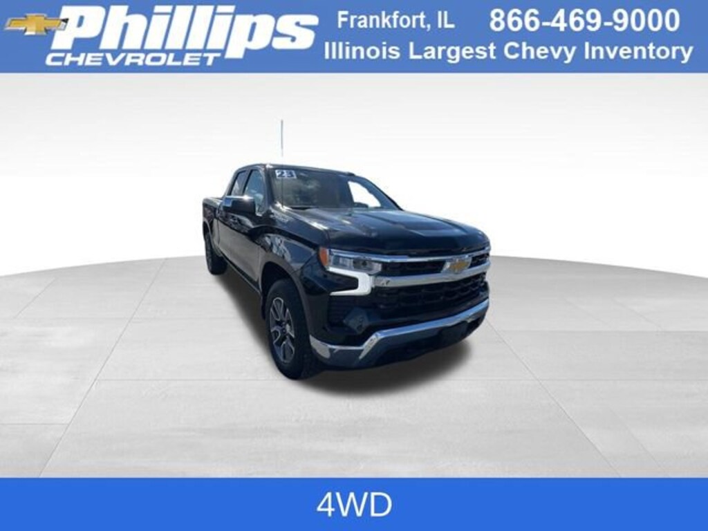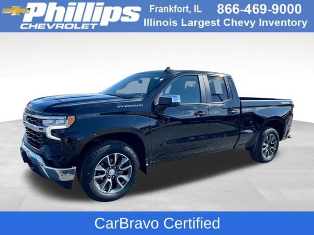 CarBravo Certified, 4WD, Trailering Package, Backup Camera, Remote Start, Pwr Dr Seat, Forward Collision Alert, Lane Departure Warning, Lane Keep Assist, Heated Seats, Heated Steering Wheel, Apple CarPlay, 20 Wheels, Carfax Buyback Guarantee, Silverado 1500 LT, 4D Extended Cab, 2.7L Turbo, 8-Speed Automatic, 4WD, Black, Jet Black w/Cloth Seat Trim, 10-Way Power Driver Seat w/Lumbar, 12.3 Multicolor Reconfigurable Digital Display, 120-Volt Bed Mounted Power Outlet, 120-Volt Instrument Panel Power Outlet, 3.42 Rear Axle Ratio, 4-Wheel Disc Brakes, 40/20/40 Front Split-Bench Seat, 6 Speakers, ABS brakes, All-Star Edition, AM/FM radio: SiriusXM with 360L, Apple CarPlay/Android Auto, Auto High-beam Headlights, Auto-Locking Rear Differential, Automatic Emergency Braking, Automatic temperature control, Bluetooth® For Phone, Brake assist, Bumpers: chrome, Chevrolet Connected Access Capable, Chrome Mirror Caps, Cloth Seat Trim, Color-Keyed Carpeting Floor Covering, Compass, Convenience Package, Deep-Tinted Glass, Delay-off headlights, Driver door bin, Driver vanity mirror, Dual front impact airbags, Dual front side impact airbags, Dual-Zone Automatic Climate Control, Electric Rear-Window Defogger, Electronic Cruise Control, Electronic Stability Control, Following Distance Indicator, Forward Collision Alert, Front anti-roll bar, Front Center Armrest w/Storage, Front dual zone A/C, Front Frame-Mounted Black Recovery Hooks, Front Pedestrian Braking, Front reading lights, Front wheel independent suspension, Fully automatic headlights, HD Rear Vision Camera, Heated door mirrors, Heated Driver & Front Outboard Passenger Seats, Heated Steering Wheel, High Capacity Suspension Package, Hitch Guidance, Illuminated entry, IntelliBeam Automatic High Beam On/Off, Keyless Open & Start, Lane Keep Assist w/Lane Departure Warning, LED Cargo Area Lighting, Low tire pressure warning, Not Equipped w/Steering Column Lock, Occupant sensing airbag, OnStar & Chevrolet Connected Services Capable, Outside temperature display, Overhead airbag, Overhead console, Passenger door bin, Passenger vanity mirror, Power door mirrors, Power driver seat, Power Front Windows w/Driver Express Up/Down, Power Front Windows w/Passenger Express Down, Power Rear Windows w/Express Down, Preferred Equipment Group 2FL, Premium audio system: Chevrolet Infotainment 3 Premium, Radio: Chevrolet Infotainment 3 Premium System, Rear 60/40 Folding Bench Seat (Folds Up), Rear reading lights, Rear step bumper, Rear window defroster, Remote Vehicle Starter System, Security system, SiriusXM w/360L, Speed-sensing steering, Split folding rear seat, Standard Suspension Package, Steering Wheel Audio Controls, Steering wheel mounted audio controls, Tachometer, Telescoping steering wheel, Theft Deterrent System (Unauthorized Entry), Tilt steering wheel, Traction control, Trailering Package, Trip computer, Variably intermittent wipers, Voltmeter, Wheels: 20 x 9 Painted Aluminum, Wi-Fi Hot Spot Capable, Wireless Phone Projection, Wrapped Steering Wheel. 2023 Chevrolet Silverado 1500 Black LT 4D Extended Cab 4WD 8-Speed Automatic 18/21 City/Highway MPG 2.7L TurboCertification Program Details: Type your description hereWith the internet today, a great value shouldnât be hard to find. Here at Phillips Chevrolet we do the research for you. We monitor the market daily to ensure our customers are getting the best value achievable. We price all of our vehicles to make the buying process as simple and easy as possible. Our internet prices are just one factor that makes us the #1, #2, and out to be the #3 Chevrolet dealerships in Illinois. The #2 Chevy dealership in Illinois is conveniently located just a one block south of 80/94, at 17730 S Torrence Avenue in Lansing, IL 60438.