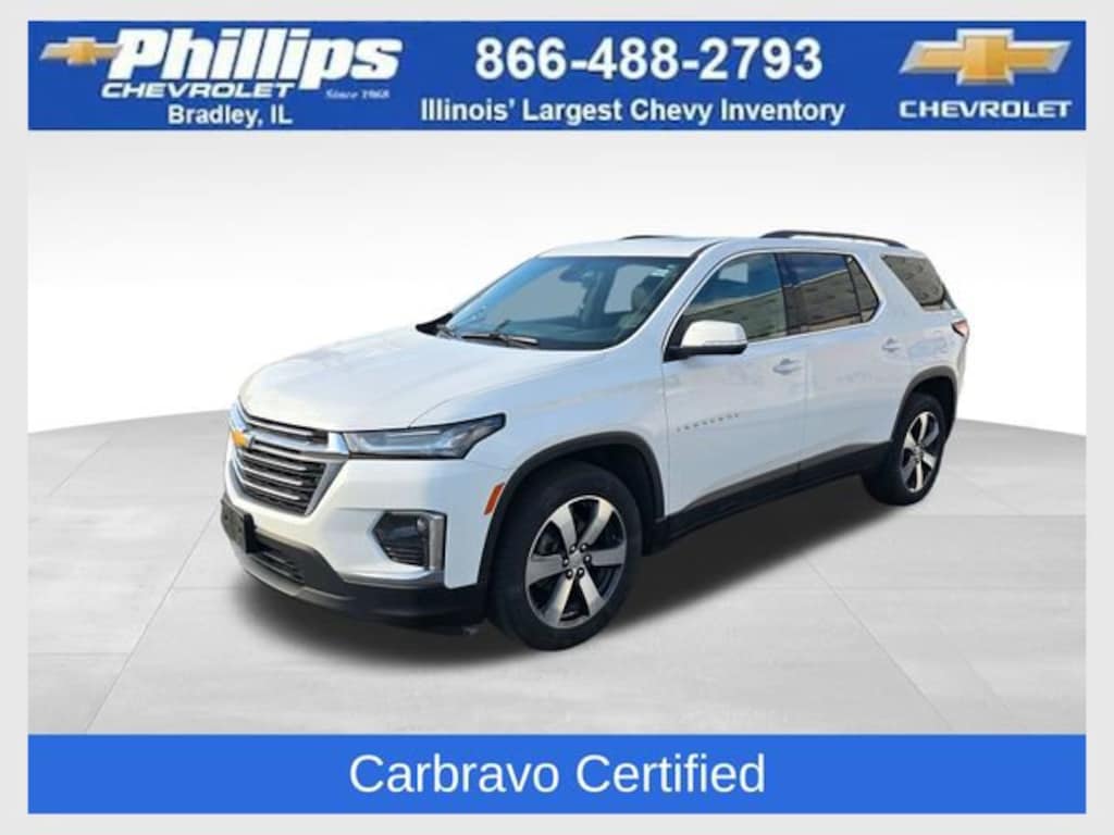 Carbravo Certified, Apple CarPlay, Android Auto, Keyless Entry, SUNROOF, AWD, Back Up Camera, Blind Spot Monitoring, Bluetooth, BOSE Audio, Heated seats, Heated steering wheel, Forward Collision Alert, Lane Assist, Pedestrian Monitoring, Power lift gate, Power Locks, Power Seating, Power Windows, Push Button Start, Rear Traffic Alert, Remote start, Chevy Safety Assist Package, Lane Change Alert, Carfax Buyback Guarantee, Traverse LT Leather, 4D Sport Utility, 3.6L V6 SIDI VVT, 9-Speed Automatic, AWD, Summit White, Black Leather, 120-Volt Power Outlet, 3.49 Axle Ratio, 6-Speaker Audio System Feature, 6-Way Power Front Passenger Seat, 8-Way Power Driver Seat Adjuster, Adaptive Cruise Control, Apple CarPlay/Android Auto, Automatic temperature control, Bose Premium 10-Speaker Audio System Feature, Brake assist, Compass, Dual SkyScape 2-Panel Power Sunroof, Electronic Stability Control, Enhanced Automatic Emergency Braking, Exterior Parking Camera Rear, Heated Driver & Front Passenger Seats, Heated front seats, Leather-Appointed Seat Trim, LT Premium Package, Outside Heated Power Adjustable Mirrors, Outside temperature display, Power Liftgate, Preferred Equipment Group 3LT, Radio: Chevrolet Infotainment 3 Plus System w/Navi, Rear Camera Mirror Package, Speed control, Upper Active Aero Shutters, Wheels: 20 Machined Face Aluminum. Clean CARFAX. Certified. Summit White 2023 Chevrolet Traverse LT Leather AWD 9-Speed Automatic 3.6L V6 SIDI VVT