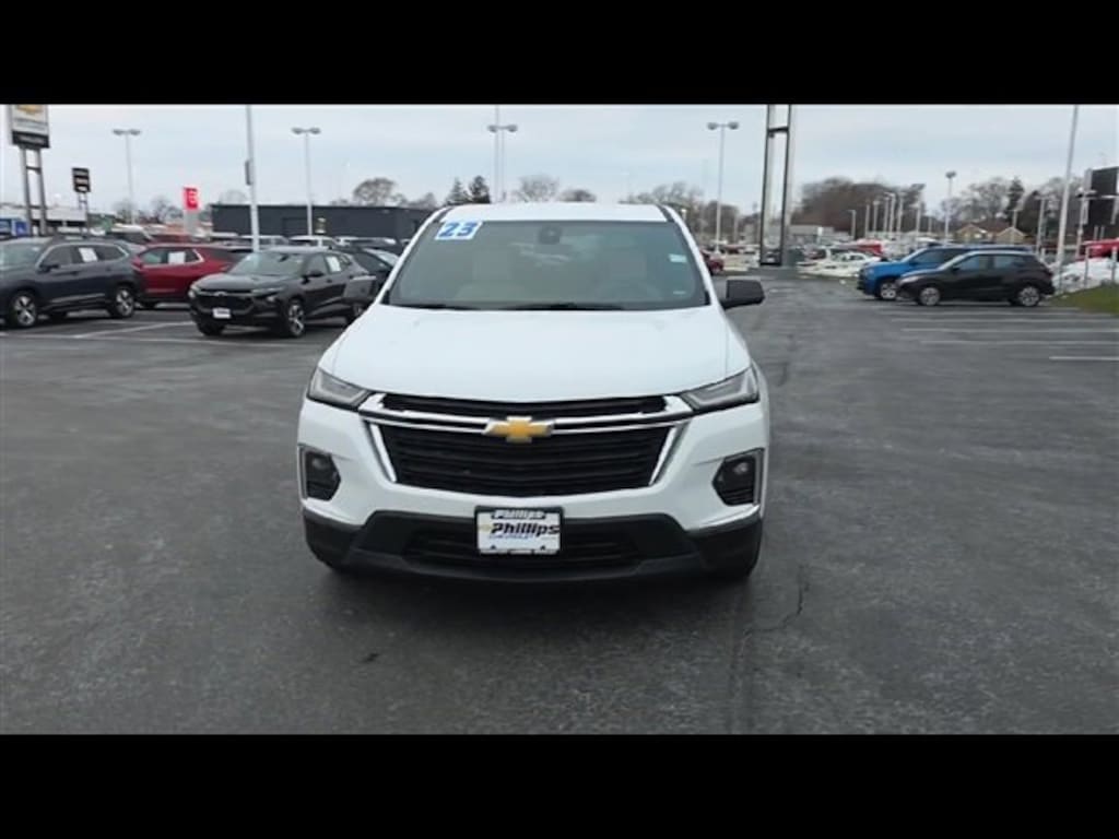 Carbravo Certified, One Owner, Carfax- Accident Free, Apple CarPlay, Android Auto, Keyless Entry, Auto Check - Accident free, AWD, Back Up Camera, Bluetooth, Cruise Control, Forward Collision Alert, Intellibeam, Lane Assist, Pedestrian Monitoring, Power Locks, Power Windows, Push Button Start, Remaining factory warranty, Lane Change Alert, Carfax Buyback Guarantee, Traverse LS, 4D Sport Utility, 3.6L V6 SIDI VVT, 9-Speed Automatic, AWD, Summit White, Jet Black/Chai w/Premium Cloth Seat Trim, 2-Way Manual Front Passenger Seat Adjuster, 3rd row seats: split-bench, 4-Wheel Disc Brakes, 6-Speaker Audio System Feature, 6-Way Manual Driver Seat Adjuster, ABS brakes, Air Conditioning, AM/FM radio: SiriusXM, Apple CarPlay/Android Auto, Auto High-beam Headlights, Automatic temperature control, Brake assist, Bumpers: body-color, Compass, Driver door bin, Driver vanity mirror, Dual front impact airbags, Dual front side impact airbags, Electronic Stability Control, Emergency communication system, Exterior Parking Camera Rear, Four wheel independent suspension, Front anti-roll bar, Front Bucket Seats, Front Center Armrest, Front dual zone A/C, Front License Plate Bracket Mounting Package, Front reading lights, Fully automatic headlights, Heated door mirrors, Illuminated entry, Integrated Cargo Liner (LPO), Low tire pressure warning, Occupant sensing airbag, Outside temperature display, Overhead airbag, Overhead console, Passenger door bin, Passenger vanity mirror, Power door mirrors, Power steering, Power windows, Preferred Equipment Group 1LS, Premium Cloth Seat Trim, Radio data system, Radio: Chevrolet Infotainment System AM/FM Stereo, Rear air conditioning, Rear anti-roll bar, Rear reading lights, Rear window defroster, Rear window wiper, Remote keyless entry, Security system, SiriusXM Radio, Speed control, Speed-sensing steering, Split folding rear seat, Spoiler, Steering wheel mounted audio controls, Tachometer, Telescoping steering wheel, Tilt steering wheel, Traction control, Trip computer, Variably intermittent wipers, Voltmeter, Wheels: 18 Bright Silver Painted Aluminum. CARFAX One-Owner. Clean CARFAX. Certified. Summit White 2023 Chevrolet Traverse LS AWD 9-Speed Automatic 3.6L V6 SIDI VVTOdometer is 20858 miles below market average!Certification Program Details: Type your description hereWith the internet today, a great value shouldn't be hard to find. Here at Phillips Chevrolet we do the research for you. We monitor the market daily to ensure our customers are getting the best value achievable. We price all of our vehicles to make the buying process as simple and easy as possible. Our internet prices are just one factor that makes us the #1, #2, and out to be the #3 Chevrolet dealerships in Illinois. The future #3 Chevy dealership in Illinois is conveniently located at 1400 Locke Drive, the corner of I-57 & IL 50, in Bradley/Bourbonnais, IL 60914.