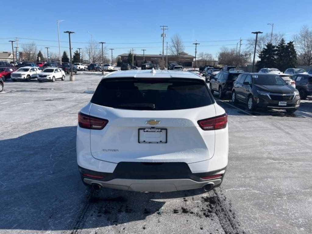 CarBravo Certified, Backup Camera, Pwr Dr Seat, Forward Collision Alert, Lane Departure Warning, Lane Keep Assist, Heated Seats, Apple CarPlay, Aluminum Wheels, Carfax Buyback Guarantee, Blazer LT, 4D Sport Utility, 2.0L Turbocharged, 9-Speed Automatic with Overdrive, FWD, Summit White, Jet Black/Medium Gray w/Premium Cloth Seat Trim, 170 Amp Alternator, 4-Way Manual Front Passenger Seat Adjuster, 4-Wheel Disc Brakes, 6-Speaker Audio System Feature, 8-Way Power Driver Seat Adjuster, ABS brakes, Air Conditioning, AM/FM radio: SiriusXM with 360L, Apple CarPlay/Android Auto, Auto High-beam Headlights, Automatic temperature control, Brake assist, Bumpers: body-color, Child-Seat-Sensing Airbag, Compass, Driver door bin, Driver vanity mirror, Dual front impact airbags, Dual front side impact airbags, Electronic Stability Control, Emergency communication system: OnStar and Chevrolet connected services capable, Four wheel independent suspension, Front anti-roll bar, Front Bucket Seats, Front Center Armrest, Front dual zone A/C, Front reading lights, Fully automatic headlights, Heated door mirrors, Heated Driver & Front Passenger Seats, Illuminated entry, Knee airbag, Leather Shift Knob, Low tire pressure warning, Occupant sensing airbag, Outside temperature display, Overhead airbag, Overhead console, Passenger door bin, Passenger vanity mirror, Power door mirrors, Power Driver Lumbar Control, Preferred Equipment Group 2LT, Premium audio system: Chevrolet Infotainment 3 Plus, Premium Cloth Seat Trim, Radio data system, Radio: Chevrolet Infotainment 3 Plus System, Rear anti-roll bar, Rear reading lights, Rear seat center armrest, Rear window defroster, Rear window wiper, Remote keyless entry, Ride & Handling Suspension, Security system, SiriusXM w/360L, Speed control, Speed-sensing steering, Split folding rear seat, Spoiler, Steering wheel mounted audio controls, Tachometer, Telescoping steering wheel, Tilt steering wheel, Traction control, Trip computer, Variably intermittent wipers, Voltmeter, Wheels: 18 Grazen Metallic Aluminum. 2024 Chevrolet Blazer Summit White LT 4D Sport Utility FWD 9-Speed Automatic with Overdrive 22/29 City/Highway MPG 2.0L Turbocharged