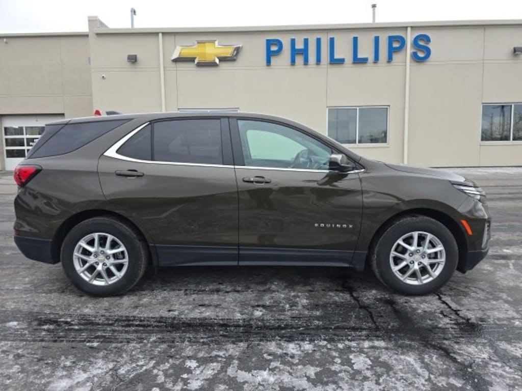 CarBravo Certified, Backup Camera, Remote Start, Pwr Dr Seat, Side Blind Zone Alert, Rear Cross Traffic Alert, Lane Departure Warning, Lane Change Alert, Lane Keep Assist, Front & Rear Park Assist, Heated Seats, Power Liftgate, Apple CarPlay, Alloy Wheels, Carfax Buyback Guarantee, Equinox LT, 4D Sport Utility, 1.5L DOHC, 6-Speed Automatic Electronic with Overdrive, FWD, Harvest Bronze Metallic, Jet Black Cloth, 17 Aluminum Wheels, 2 Rear USB Charging-Only Ports, 2 USB Ports & Auxiliary Input Jack, 2-Way Power Driver Lumbar Control Seat Adjuster, 3.50 Final Drive Axle Ratio, 4-Wheel Disc Brakes, 6-Speaker Audio System Feature, ABS brakes, AM/FM radio: SiriusXM, Bluetooth® For Phone, Brake assist, Bumpers: body-color, Cold Air Grille Shutter, Compass, Driver 8-Way Power Seat Adjuster, Driver door bin, Driver vanity mirror, Dual front impact airbags, Dual front side impact airbags, Electronic Stability Control, Emergency communication system: OnStar and Chevrolet connected services capable, Four wheel independent suspension, Front anti-roll bar, Front Bucket Seats, Front Center Armrest, Front dual zone A/C, Front Passenger 4-Way Manual Seat Adjuster, Front reading lights, Fully automatic headlights, Heated door mirrors, Heated Driver & Front Passenger Seats, Illuminated entry, Low tire pressure warning, Occupant sensing airbag, Outside temperature display, Overhead airbag, Overhead console, Panic alarm, Passenger door bin, Passenger vanity mirror, Power door mirrors, Power driver seat, Power Liftgate, Power steering, Power windows, Preferred Equipment Group 1LT, Premium audio system: Chevrolet Infotainment 3, Premium Cloth Seat Trim, Radio data system, Radio: Chevrolet Infotainment 3 System w/AM/FM, Rear anti-roll bar, Rear reading lights, Rear seat center armrest, Rear window defroster, Rear window wiper, Remote keyless entry, Security system, Speed control, Speed-sensing steering, Split folding rear seat, Spoiler, Steering wheel mounted audio controls, Tachometer, Telescoping steering wheel, Tilt steering wheel, Traction control, Trip computer, Variably intermittent wipers. 2024 Chevrolet Equinox Harvest Bronze Metallic LT 4D Sport Utility FWD 6-Speed Automatic Electronic with Overdrive 26/31 City/Highway MPG 1.5L DOHC