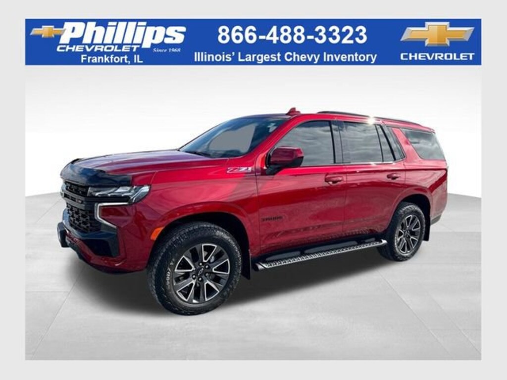 CarBravo Certified, Leather Seats, 4WD, Front and Rear Park Assist, Backup Camera, Remote Start, 3rd Row Seating!, Pwr Dr Seat, Captain's Seats, Forward Collision Alert, Navigation, Bose Audio, Lane Departure Warning, Lane Keep Assist, Heated Seats, Memory Seating, Power Liftgate, Apple CarPlay, 20 Wheels, Carfax Buyback Guarantee, Tahoe Z71, 4D Sport Utility, EcoTec3 5.3L V8, 10-Speed Automatic with Overdrive, 4WD, Radiant Red Tintcoat, Jet Black w/Leather-Appointed Seat Trim, 10-Way Power Driver & Passenger Seat Adjusters, 2-Speed Active Electronic AutoTrac Transfer Case, 2nd Row Manual Bucket Seats, 3.23 Rear Axle Ratio, 3rd row seats: split-bench, 4-Wheel Disc Brakes, ABS brakes, Apple CarPlay/Android Auto, Auto-Dimming Inside Rear-View Mirror, Black Tubular Assist Steps, Bose 9-Speaker Stereo Audio System Feature, Brake assist, Bright Front & Rear Door Sill Plates, Bumpers: body-color, Compass, Driver & Front Outboard Passenger Airbags, Driver door bin, Driver vanity mirror, Dual front impact airbags, Dual front side impact airbags, Electronic Stability Control, Emergency communication system: OnStar and Chevrolet connected services capable, Enhanced Driver Information Center, Floor Console w/Storage Area, Four wheel independent suspension, Front anti-roll bar, Front Bucket Seats, Front Center Armrest, Front dual zone A/C, Front High-Approach Angle Fascia, Front High-Back Reclining Bucket Seats, Front reading lights, Fully automatic headlights, Garage door transmitter, Hands-Free Rear Power Programmable Liftgate, Heated door mirrors, Heated Driver & Front Passenger Seats, Heated front seats, Hill Descent Control, Illuminated entry, Infotainment Display, Leather-Appointed Seat Trim, LED Daytime Running Lamps, Low tire pressure warning, Memory seat, Memory Settings for Driver, Navigation System, Occupant sensing airbag, Outside temperature display, Overhead airbag, Overhead console, Panic alarm, Passenger door bin, Passenger vanity mirror, Power door mirrors, Power driver seat, Power Liftgate, Power passenger seat, Power steering, Power windows, Preferred Equipment Group 2Z7, Premium Smooth Ride Suspension, Radio: Chevrolet Infotainment 3 Premium System, Rain sensing wipers, Rear air conditioning, Rear anti-roll bar, Rear reading lights, Rear seat center armrest, Rear window defroster, Rear window wiper, Red Horizontal-Mounted Recovery Hooks, Remote keyless entry, Remote Start, Security system, SiriusXM w/360L, Speed control, Speed-sensing steering, Split folding rear seat, Spoiler, Steering wheel mounted audio controls, Tachometer, Telescoping steering wheel, Tilt steering wheel, Traction control, Trip computer, Universal Home Remote, Voltmeter, Wheels: 20 x 9 Machined Aluminum, Wireless Charging, Wrapped Steering Wheel. 2024 Chevrolet Tahoe Radiant Red Tintcoat Z71 4D Sport Utility 4WD 10-Speed Automatic with Overdrive 15/20 City/Highway MPG EcoTec3 5.3L V8Certification Program Details: Type your description hereWith the internet today, a great value shouldnât be hard to find. Here at Phillips Chevrolet we do the research for you. We monitor the market daily to ensure our customers are getting the best value achievable. We price all of our vehicles to make the buying process as simple and easy as possible. Our internet prices are just one factor that makes us the #1, #2, and out to be the #3 Chevrolet dealerships in Illinois. The #2 Chevy dealership in Illinois is conveniently located just a one block south of 80/94, at 17730 S Torrence Avenue in Lansing, IL 60438.
