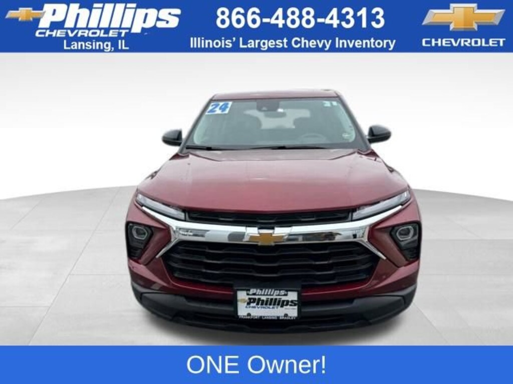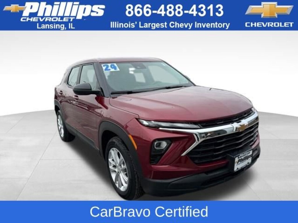 CarBravo Certified, ONE Owner!, No Added Cert. Fees, Apple CarPlay, Keyless Entry, Forward Collision Alert, Backup Camera, BLUETOOTH, Power Windows/Locks, PUSH BUTTON START!, Lane Departure Warning, Lane Keep Assist, Cruise Control, Carfax Buyback Guarantee, TrailBlazer LS, 4D Sport Utility, 1.2L Ecotec Turbo DOHC DI w/VVT, CVT, FWD, Crimson Metallic, Black Cloth, 1 Type-A & 1 Type-C USB Ports, 11 Diagonal HD Color Touchscreen, 4-Speaker Audio System Feature, 4-Way Manual Front Passenger Seat Adjuster, 4-Wheel Disc Brakes, 5.45 Final Drive Axle Ratio, 6-Way Manual Driver Seat Adjuster, ABS brakes, AM/FM radio: SiriusXM, Auto High-beam Headlights, Brake assist, Bumpers: body-color, Chevrolet Connected Access Capable, Cloth Seat Trim, Compass, Delay-off headlights, Driver door bin, Driver vanity mirror, Dual front impact airbags, Dual front side impact airbags, Electronic Stability Control, Emergency communication system: OnStar and Chevrolet connected services capable, Exterior Parking Camera Rear, Flat-Folding Front Passenger Seatback, Front & Rear All-Weather Floor Liners (LPO), Front anti-roll bar, Front Center Armrest, Front reading lights, Front wheel independent suspension, Fully automatic headlights, Illuminated entry, Knee airbag, Low tire pressure warning, Occupant sensing airbag, Overhead airbag, Overhead console, Panic alarm, Passenger door bin, Passenger vanity mirror, Power door mirrors, Preferred Equipment Group 1LS, Rear side impact airbag, Rear window defroster, Rear window wiper, Remote keyless entry, Ride & Handling Suspension, Security system, Speed control, Split folding rear seat, Spoiler, Steering wheel mounted audio controls, Tachometer, Telescoping steering wheel, Tilt steering wheel, Traction control, Trip computer, Variably intermittent wipers, Wheels: 17 Silver-Painted Aluminum, Wireless Apple CarPlay/Android Auto. 2024 Chevrolet TrailBlazer Crimson Metallic LS 4D Sport Utility FWD CVT 29/31 City/Highway MPG 1.2L Ecotec Turbo DOHC DI w/VVT29/31 City/Highway MPG Recent Arrival!Certification Program Details: Type your description hereWith the internet today, a great value shouldnât be hard to find. Here at Phillips Chevrolet we do the research for you. We monitor the market daily to ensure our customers are getting the best value achievable. We price all of our vehicles to make the buying process as simple and easy as possible. Our internet prices are just one factor that makes us the #1, #2, and out to be the #3 Chevrolet dealerships in Illinois. The #2 Chevy dealership in Illinois is conveniently located just a one block south of 80/94, at 17730 S Torrence Avenue in Lansing, IL 60438.