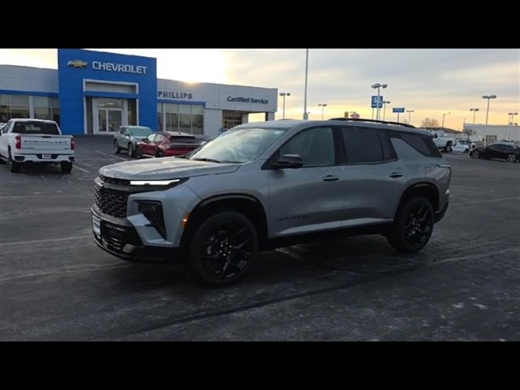 Carbravo Certified, One Owner, Carfax- Accident Free, Apple CarPlay, Android Auto, Keyless Entry, Adaptive Cruise Control (ACC), Auto Check - Accident free, AWD, Back Up Camera, Blind Spot Monitoring, Bluetooth, BOSE Audio, Panoramic Sunroof, Pedestrian Monitoring, Power lift gate, Power Locks, Power Seating, Power Windows, Push Button Start, Rear Traffic Alert, Remaining factory warranty, Remote start, Safety Alert Seat, Chevy Safety Assist Package, Carfax Buyback Guarantee, ENHANCED DRIVING PACKAGE, CONVENIENCE AND DRIVER CONFIDENCE PACKAGE, Traverse RS, 4D Sport Utility, 2.5L DOHC, 8-Speed Automatic, AWD, Sterling Gray Metallic, Jet Black w/Torch Red Accents w/Perforated Leather-Appointed Seat Trim, 3rd row seats: split-bench, 4-Wheel Disc Brakes, 6-Way Power Front Passenger Seat Adjuster, 8-Way Power Driver Seat Adjuster, ABS brakes, Air Conditioning, AM/FM radio: SiriusXM with 360L, Apple CarPlay/Android Auto, Auto High-beam Headlights, Auto-dimming door mirrors, Automatic temperature control, Bose Premium 10-Speaker Audio System Feature, Brake assist, Bumpers: body-color, Compass, Driver 4-Way Power Lumbar Seat Adjuster, Driver door bin, Driver vanity mirror, Dual front impact airbags, Dual front side impact airbags, Electronic Stability Control, Emergency communication system, Exterior Parking Camera Rear, Four wheel independent suspension, Front anti-roll bar, Front Bucket Seats, Front Center Armrest, Front dual zone A/C, Front Passenger 4-Way Power Lumbar Seat Adjuster, Front reading lights, Fully automatic headlights, Heated door mirrors, Heated front seats, Heated steering wheel, Illuminated entry, Low tire pressure warning, Navigation System, Not Equipped w/Heated Wiper Park, Occupant sensing airbag, Outside temperature display, Overhead airbag, Overhead console, Passenger door bin, Passenger vanity mirror, Perforated Leather-Appointed Seat Trim, Power door mirrors, Power Liftgate, Power moonroof, Preferred Equipment Group 2RS, Radio data system, Radio: 17.7 Diagonal Display, Rain sensing wipers, Rear air conditioning, Rear anti-roll bar, Rear reading lights, Rear window defroster, Rear window wiper, Remote keyless entry, Security system, SiriusXM w/360L, Speed control, Speed-sensing steering, Spoiler, Sport steering wheel, Steering wheel mounted audio controls, Tachometer, Telescoping steering wheel, Tilt steering wheel, Traction control, Trip computer, Turn signal indicator mirrors, Variably intermittent wipers, Ventilated front seats, Voltmeter, Wheels: 22 High Gloss Black Painted Aluminum. CARFAX One-Owner. Clean CARFAX. Certified. Sterling Gray Metallic 2024 Chevrolet Traverse RS AWD 8-Speed Automatic 2.5L DOHC