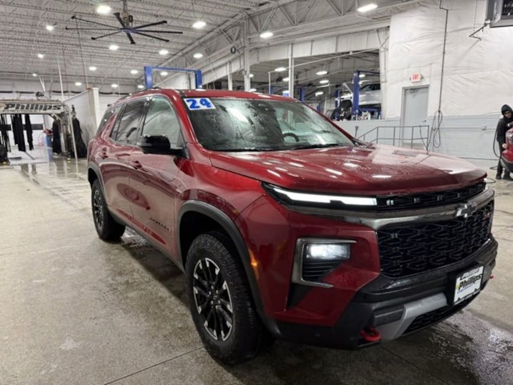 CarBravo Certified, Carfax Buyback Guarantee, Traverse Z71, 4D Sport Utility, 2.5L DOHC, 8-Speed Automatic, AWD, Radiant Red Tintcoat, Jet Black With Torch Red Accents Cloth, 3rd row seats: split-bench, 4-Way Manual Front Passenger Seat Adjuster, 4-Wheel Disc Brakes, 6-Speaker Audio System Feature, 8-Way Power Driver Seat Adjuster, ABS brakes, Air Conditioning, AM/FM radio: SiriusXM with 360L, Apple CarPlay/Android Auto, Auto High-beam Headlights, Automatic temperature control, Brake assist, Compass, Driver 4-Way Power Lumbar Seat Adjuster, Driver door bin, Driver vanity mirror, Dual front impact airbags, Dual front side impact airbags, Electronic Stability Control, Emergency communication system, Exterior Parking Camera Rear, Four wheel independent suspension, Front anti-roll bar, Front Bucket Seats, Front Center Armrest, Front dual zone A/C, Front reading lights, Fully automatic headlights, Heated door mirrors, Heated front seats, Heated steering wheel, Illuminated entry, Low tire pressure warning, Navigation System, Occupant sensing airbag, Outside temperature display, Overhead airbag, Overhead console, Passenger door bin, Passenger vanity mirror, Power door mirrors, Power Liftgate, Preferred Equipment Group 2Z7, Premium Cloth Seat Trim, Radio data system, Radio: 17.7 Diagonal Display, Rear air conditioning, Rear anti-roll bar, Rear reading lights, Rear window defroster, Rear window wiper, Remote keyless entry, Security system, SiriusXM w/360L, Speed control, Speed-sensing steering, Spoiler, Steering wheel mounted audio controls, Tachometer, Telescoping steering wheel, Tilt steering wheel, Traction control, Trip computer, Turn signal indicator mirrors, Variably intermittent wipers, Voltmeter, Wheels: 18 High Gloss Black Painted Aluminum. 2024 Chevrolet Traverse Radiant Red Tintcoat Z71 4D Sport Utility AWD 8-Speed Automatic 19/24 City/Highway MPG 2.5L DOHCRecent Arrival!Certification Program Details: Type your description hereWith the internet today, a great value shouldnât be hard to find. Here at Phillips Chevrolet we do the research for you. We monitor the market daily to ensure our customers are getting the best value achievable. We price all of our vehicles to make the buying process as simple and easy as possible. Our internet prices are just one factor that makes us the #1, #2, and out to be the #3 Chevrolet dealerships in Illinois. The #2 Chevy dealership in Illinois is conveniently located just a one block south of 80/94, at 17730 S Torrence Avenue in Lansing, IL 60438.