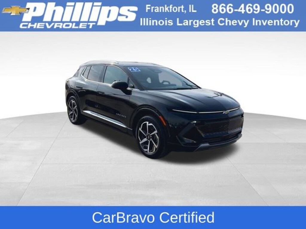CarBravo Certified, Backup Camera, Remote Start, Pwr Dr Seat, Forward Collision Alert, Navigation, Side Blind Zone Alert, Rear Cross Traffic Alert, Lane Departure Warning, Lane Change Alert, Lane Keep Assist, Rear Park Assist, Adaptive Cruise Control, Heated Seats, Heated Steering Wheel, Power Liftgate, Apple CarPlay, Aluminum Wheels, Carfax Buyback Guarantee, Equinox EV LT, 4D Sport Utility, Electric Motor, 1-Speed Automatic, FWD, Black, Sky Cool Gray w/Evotex Seat Trim, 19 Wheels, 4-Wheel Disc Brakes, 6-Speaker Audio System Feature, 6-Way Manual Front Passenger Seat Adjuster, 8-Way Power Driver Seat Adjuster, ABS brakes, Air Conditioning, AM/FM radio: SiriusXM with 360L, Auto High-beam Headlights, Auto-dimming Rear-View mirror, Automatic temperature control, Brake assist, Bumpers: body-color, Compass, Driver door bin, Driver vanity mirror, Dual front impact airbags, Dual front side impact airbags, Electronic Stability Control, Emergency communication system: OnStar and Chevrolet connected services capable, Evotex Seat Trim, Four wheel independent suspension, Front anti-roll bar, Front Bucket Seats, Front Center Armrest, Front reading lights, Fully automatic headlights, Heated door mirrors, Heated Driver and Front Passenger Seats Cushion and Seatback, Heated steering wheel, Illuminated entry, Knee airbag, Low tire pressure warning, LT 2 Package, Navigation system: Google built-in compatibility (select service plan required, terms and limitations apply), Occupant sensing airbag, Outside temperature display, Overhead airbag, Overhead console, Passenger door bin, Passenger vanity mirror, Power door mirrors, Power Driver Lumbar Control, Power Liftgate, Preferred Equipment Group 2LT, Radio: 17.7 Diagonal Advanced Color LCD Display, Rear anti-roll bar, Rear reading lights, Rear seat center armrest, Rear window defroster, Rear window wiper, Remote keyless entry, Security system, SiriusXM with 360L Trial Subscription, Speed control, Split folding rear seat, Spoiler, Steering wheel mounted audio controls, Telescoping steering wheel, Tilt steering wheel, Traction control, Trip computer, Turn signal indicator mirrors, Variably intermittent wipers. 2025 Chevrolet Equinox EV Black LT 4D Sport Utility FWD 1-Speed Automatic Electric MotorCertification Program Details: Type your description hereWith the internet today, a great value shouldnât be hard to find. Here at Phillips Chevrolet we do the research for you. We monitor the market daily to ensure our customers are getting the best value achievable. We price all of our vehicles to make the buying process as simple and easy as possible. Our internet prices are just one factor that makes us the #1, #2, and out to be the #3 Chevrolet dealerships in Illinois. The #2 Chevy dealership in Illinois is conveniently located just a one block south of 80/94, at 17730 S Torrence Avenue in Lansing, IL 60438.
