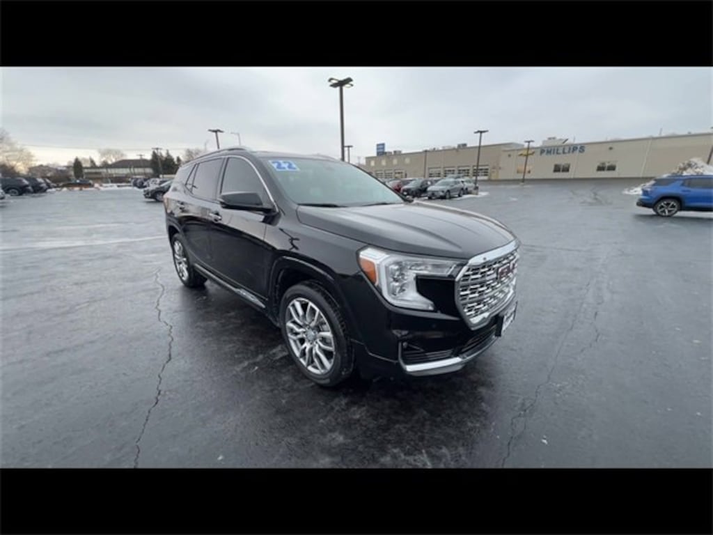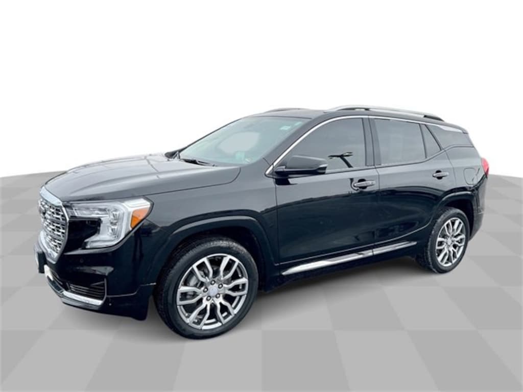 Low Miles, CarBravo Certified, AWD, Leather Seats, Panoramic Roof, Backup Camera, Remote Start, Pwr Dr Seat, Forward Collision Alert, Head-Up Display, Navigation, Bose Audio, Side Blind Zone Alert, Rear Cross Traffic Alert, Lane Departure Warning, Lane Change Alert, Lane Keep Assist, Rear Park Assist, Heated Seats, Heated Steering Wheel, Memory Seating, Power Liftgate, Apple CarPlay, Aluminum Wheels, Carfax Buyback Guarantee, Terrain Denali, 4D Sport Utility, 1.5L DOHC, 9-Speed Automatic, AWD, Ebony Twilight Metallic, Jet Black w/Perforated Leather-Appointed Seat Trim, 2 USB Data Ports, 2 USB Data Ports w/SD Card Reader, 3 Years of OnStar & Connected Services Plan, 3.47 Axle Ratio, 4-Wheel Disc Brakes, 6-Way Power Front Passenger Seat, 8-Way Power Driver Seat Adjuster, ABS brakes, Air Conditioning, AM/FM radio: SiriusXM, Auto High-beam Headlights, Auto-dimming Rear-View mirror, Automatic temperature control, Bluetooth® For Phone, Brake assist, Bumpers: body-color, Cold Air Grille Shutter, Compass, Driver & Front Passenger Heated Seats, Driver door bin, Driver vanity mirror, Dual front impact airbags, Dual front side impact airbags, Electronic Stability Control, Emergency communication system, Four wheel independent suspension, Front anti-roll bar, Front Bucket Seats, Front Center Armrest, Front dual zone A/C, Front fog lights, Front Passenger 2-Way Power Lumbar, Front reading lights, Fully automatic headlights, Garage door transmitter, Heads-Up Display, Heated door mirrors, Heated steering wheel, Illuminated entry, Lane Departure Warning System, License Plate Front Mounting Package, Low tire pressure warning, Memory seat, Navigation system: GMC Connected Navigation, Occupant sensing airbag, Outside temperature display, Overhead airbag, Overhead console, Passenger door bin, Passenger vanity mirror, Perforated Leather-Appointed Seat Trim, Power door mirrors, Power Driver Lumbar Control, Power Liftgate, Power passenger seat, Preferred Equipment Group 5SA, Premium 7-Speaker Bose Sound System w/Amplifier, Radio data system, Radio: GMC Infotainment Audio System w/Navigation, Rear anti-roll bar, Rear seat center armrest, Rear window defroster, Rear window wiper, Remote keyless entry, Roof rack: rails only, Security system, SiriusXM Radio, Skyscape Power Sunroof w/Power Sunscreen, Speed control, Speed-sensing steering, Split folding rear seat, Spoiler, Steering wheel mounted audio controls, Tachometer, Telescoping steering wheel, Tilt steering wheel, Traction control, Trip computer, Turn signal indicator mirrors, Variably intermittent wipers, Wheels: 19 x 7.5 Bright Machined Aluminum, Wireless Apple CarPlay/Wireless Android Auto. 2022 GMC Terrain Ebony Twilight Metallic Denali 4D Sport Utility AWD 9-Speed Automatic 25/28 City/Highway MPG 1.5L DOHC