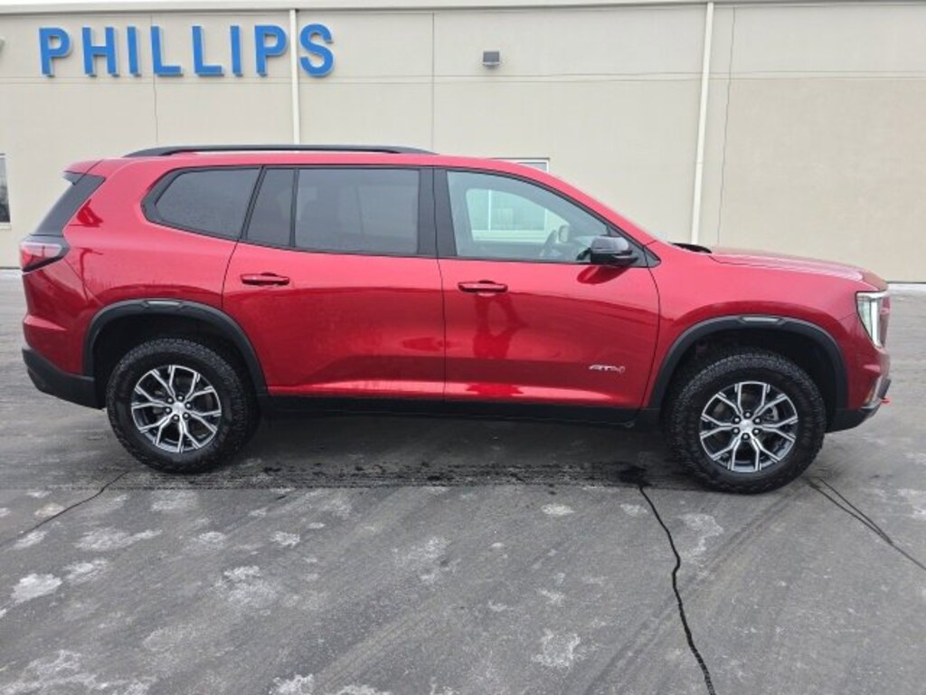 Low Miles, CarBravo Certified, AWD, Trailering Package, Backup Camera, Remote Start, 7 Passenger Seating, Pwr Dr Seat, Forward Collision Alert, Navigation, Bose Audio, Side Blind Zone Alert, Rear Cross Traffic Alert, Lane Departure Warning, Lane Change Alert, Lane Keep Assist, Rear Park Assist, Adaptive Cruise Control, Heated Seats, Heated Steering Wheel, Power Liftgate, Apple CarPlay, Aluminum Wheels, Carfax Buyback Guarantee, Acadia AT4, 4D Sport Utility, 2.5L DOHC, 8-Speed Automatic, AWD, Volcanic Red Tintcoat, Forest Storm w/Mahogany Accents w/Cloth/CoreTec Seat Trim, 3.49 Final Drive Axle Ratio, 3rd row seats: split-bench, 4-Wheel Disc Brakes, 6-Way Power Front Passenger Seat Adjuster, 7-Passenger Seating (2-2-3 Seating Configuration), 8-Way Power Driver Seat Adjuster, ABS brakes, Air Conditioning, AM/FM radio: SiriusXM with 360L, Apple CarPlay/Android Auto, Auto High-beam Headlights, Auto-dimming Rear-View mirror, Automatic temperature control, Bodyside moldings, Bose Performance 12-Speaker System w/Sub-woofer, Brake assist, Bumpers: body-color, Cloth/CoreTec Seat Trim, Compass, Driver 4-Way Power Lumbar Seat Adjuster, Driver door bin, Driver vanity mirror, Dual front impact airbags, Dual front side impact airbags, Electronic Stability Control, Emergency communication system: OnStar and GMC connected services capable, Exterior Parking Camera Rear, Four wheel independent suspension, Front anti-roll bar, Front Bucket Seats, Front Center Armrest, Front dual zone A/C, Front fog lights, Front Passenger 4-Way Power Lumbar Seat Adjuster, Front reading lights, Fully automatic headlights, Garage door transmitter, Heated door mirrors, Heated Driver & Front Passenger Seats, Heated steering wheel, Illuminated entry, Leather steering wheel, Low tire pressure warning, Navigation System, Occupant sensing airbag, Outside temperature display, Overhead airbag, Overhead console, Passenger door bin, Passenger vanity mirror, Power door mirrors, Power Liftgate, Power passenger seat, Preferred Equipment Group 4SB, Radio data system, Radio: 15 Premium GMC Infotainment System, Rear air conditioning, Rear anti-roll bar, Rear reading lights, Rear side impact airbag, Rear window defroster, Rear window wiper, Remote keyless entry, Security system, SiriusXM w/360L, Speed control, Speed-sensing steering, Spoiler, Sport steering wheel, Steering wheel mounted audio controls, Tachometer, Telescoping steering wheel, Tilt steering wheel, Traction control, Trip computer, Turn signal indicator mirrors, Variably intermittent wipers, Voltmeter, Wheels: 18 x 8 Dark Machined Aluminum. 2024 GMC Acadia Volcanic Red Tintcoat AT4 4D Sport Utility AWD 8-Speed Automatic 19/24 City/Highway MPG 2.5L DOHC