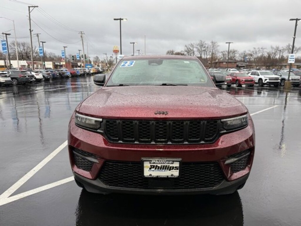 CarBravo Certified, ONE Owner!, No Added Cert. Fees, 4WD!, Heated Seats, Heated Steering Wheel, Apple CarPlay, Keyless Entry, Forward Collision Alert, Side Blind Zone Alert, Backup Camera, BLUETOOTH, Power Windows/Locks, Power Seating, PUSH BUTTON START!, Remote Start, Rear Park Assist, Lane Keep Assist, Lane Change Alert, Cruise Control, Carfax Buyback Guarantee, Lane Assist, Grand Cherokee Altitude, 4D Sport Utility, 3.6L V6 24V VVT, 8-Speed Automatic, 4WD, Velvet Red Pearlcoat, Global Black Artificial Leather, 115-Volt Auxiliary Power Outlet, 3.45 Rear Axle Ratio, 4-Wheel Disc Brakes, ABS brakes, Altitude Appearance Package, AM/FM radio: SiriusXM with 360L, Anti-whiplash front head restraints, Automatic temperature control, Black Headliner, Brake assist, Bumpers: body-colour, Capri Leatherette Seats w/Suede, Cloth Seats, Compass, Delay-off headlights, Delete Laredo Badge, Driver door bin, Driver vanity mirror, Dual front impact airbags, Dual front side impact airbags, Electronic Stability Control, Four wheel independent suspension, Front anti-roll bar, Front Bucket Seats, Front dual zone A/C, Front reading lights, Fully automatic headlights, Gloss Black Exterior Accents, Gloss Black Roof Rails, Heated door mirrors, Heated front seats, Heated steering wheel, Illuminated entry, Knee airbag, Low tire pressure warning, Normal-Duty Suspension, Occupant sensing airbag, Outside temperature display, Overhead airbag, Overhead console, Panic alarm, ParkView Rear Back-Up Camera, Passenger door bin, Passenger vanity mirror, Power door mirrors, Power driver seat, Power Liftgate, Power Sunroof, Quick Order Package 23B Altitude, Radio: Uconnect 5 w/8.4 Flush Display, Rain-Sensing Windshield Wipers, Rear anti-roll bar, Rear reading lights, Rear window defroster, Rear window wiper, Remote keyless entry, Remote Start System, Secondary Active Grille Shutters, Security system, Selectable Tire Fill Alert, Speed control, Speed-Sensitive Wipers, Split folding rear seat, Spoiler, Steering wheel mounted audio controls, Tachometer, Telescoping steering wheel, Tilt steering wheel, Traction control, Trip computer, Variably intermittent wipers, Voltmeter, Wheels: 20 x 8.0 Gloss Black Aluminum, Wireless Charging Pad. 2023 Jeep Grand Cherokee Velvet Red Pearlcoat Altitude 4D Sport Utility 4WD 8-Speed Automatic 19/26 City/Highway MPG 3.6L V6 24V VVT19/26 City/Highway MPG Recent Arrival!Certification Program Details: Type your description hereWith the internet today, a great value shouldnât be hard to find. Here at Phillips Chevrolet we do the research for you. We monitor the market daily to ensure our customers are getting the best value achievable. We price all of our vehicles to make the buying process as simple and easy as possible. Our internet prices are just one factor that makes us the #1, #2, and out to be the #3 Chevrolet dealerships in Illinois. The #2 Chevy dealership in Illinois is conveniently located just a one block south of 80/94, at 17730 S Torrence Avenue in Lansing, IL 60438.