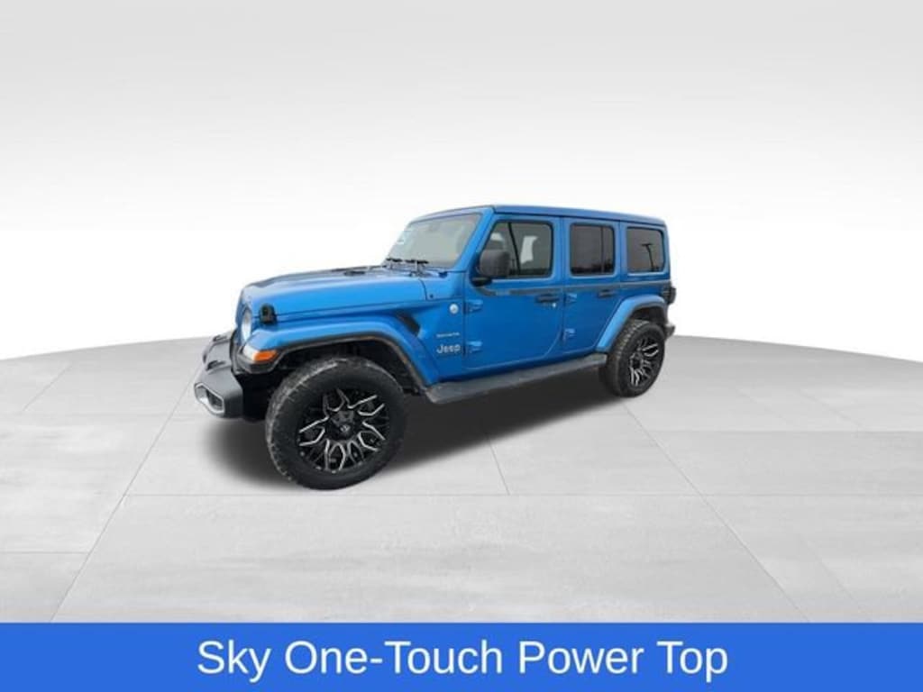 CarBravo Certified, 4WD, Sky One-Touch Power Top, Backup Camera, Remote Start, Forward Collision Alert, Side Blind Zone Alert, Rear Park Assist, Adaptive Cruise Control, Heated Seats, Heated Steering Wheel, Apple CarPlay, Aluminum Wheels, Carfax Buyback Guarantee, Wrangler Sahara, 4D Sport Utility, 2.0L I4 DOHC, 8-Speed Automatic, 4WD, Hydro Blue Pearlcoat, Black w/Cloth Low-Back Bucket Seats, 3.45 Overall Top Gear Ratio, 4-Wheel Disc Brakes, 9 Speakers, ABS brakes, Advanced Brake Assist, Advanced Safety Group, Air Conditioning, Alloy wheels, AM/FM radio: SiriusXM, Apple CarPlay/Android Auto, Auto High Beam Headlamp Control, Auto-dimming Rear-View mirror, Automatic temperature control, Blind Spot & Cross Path Detection, Brake assist, Cloth Low-Back Bucket Seats, Cold Weather Group, Compass, Driver door bin, Driver vanity mirror, Dual front impact airbags, Dual front side impact airbags, Electronic Stability Control, Emergency communication system: SiriusXM Guardian, Front anti-roll bar, Front Center Armrest w/Storage, Front dual zone A/C, Front fog lights, Front reading lights, Full Speed Forward Collision Warning Plus, Fully automatic headlights, Garage door transmitter, Heated door mirrors, Heated Front Seats, Heated Steering Wheel, Heavy Duty Suspension w/Gas Shocks, Illuminated entry, Integrated roll-over protection, Low tire pressure warning, Navigation System, Occupant sensing airbag, Outside temperature display, ParkSense Rear Park Assist System, ParkView Rear Back-Up Camera, Passenger door bin, Passenger vanity mirror, Power door mirrors, Power Top Quarter Window Storage Bag, Quick Order Package 22G Sahara, Radio data system, Radio: Uconnect 4C Nav w/8.4 Display, Rear anti-roll bar, Rear reading lights, Remote keyless entry, Remote Start System, Removable Rear Quarter Windows, Safety Group, Security system, Sky 1-Touch Power Top, Speed control, Split folding rear seat, Steering wheel mounted audio controls, Stop-Start Dual Battery System, Tachometer, Telescoping steering wheel, Tilt steering wheel, Traction control, Trip computer, Variably intermittent wipers, Voltmeter. 2023 Jeep Wrangler Hydro Blue Pearlcoat Sahara 4D Sport Utility 4WD 8-Speed Automatic 21/24 City/Highway MPG 2.0L I4 DOHC