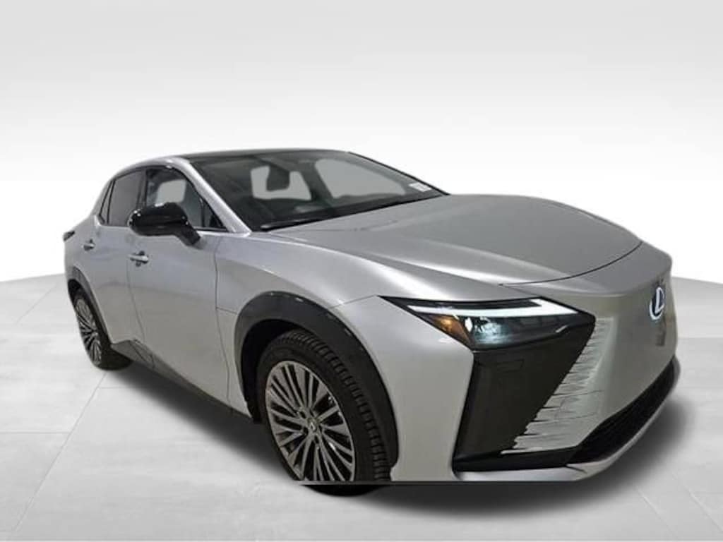 CarBravo Certified, ONE Owner!, Accident FREE, No Added Cert. Fees, Certified Multi-Point Inspection, AWD!, Navigation, Heated Seats, Heated Steering Wheel, Apple CarPlay, Keyless Entry, Ventilated Seats, Head-Up Display, Side Blind Zone Alert, Rear Cross Traffic Alert, Backup Camera, BLUETOOTH, Power Windows/Locks, Power Seating, PUSH BUTTON START!, 20 Wheels!, Memory Seating, Power Liftgate, Carfax Buyback Guarantee, RZ 450e Luxury, 4D Sport Utility, Electric Motor, Single-Speed Automatic, AWD, Iridium, Dapple Gray/Black w/Ultrasuede Seat Trim, 13 Speakers, 4-Wheel Disc Brakes, ABS brakes, AM/FM radio: SiriusXM, Apple CarPlay/Android Auto, Auto-dimming door mirrors, Auto-dimming Rear-View mirror, Brake assist, Bumpers: body-color, Driver door bin, Driver vanity mirror, Dual front impact airbags, Dual front side impact airbags, Dynamic Sky Panorama Glass Roof w/Dimming, Electronic Stability Control, Emergency communication system: Safety Connect (10-year trial), Exterior Parking Camera Rear, Four wheel independent suspension, Front anti-roll bar, Front Bucket Seats, Front Center Armrest, Front dual zone A/C, Front reading lights, Fully automatic headlights, Heads-Up Display, Heated & Ventilated Front Bucket Seats, Heated door mirrors, Heated rear seats, Heated steering wheel, Illuminated entry, Knee airbag, Low tire pressure warning, Memory seat, Navigation System, Occupant sensing airbag, Outside temperature display, Overhead airbag, Overhead console, Panic alarm, Passenger door bin, Passenger vanity mirror, Power door mirrors, Power driver seat, Power Liftgate, Power passenger seat, Power steering, Power windows, Radio data system, Radio: Lexus Interface w/Mark Levinson Audio, Rear anti-roll bar, Rear seat center armrest, Rear window defroster, Remote keyless entry, Security system, Speed control, Speed-sensing steering, Split folding rear seat, Spoiler, Steering wheel memory, Steering wheel mounted audio controls, Telescoping steering wheel, Tilt steering wheel, Traction control, Trip computer, Turn signal indicator mirrors, Ultrasuede Seat Trim, Variably intermittent wipers, Ventilated front seats, Wheels: 20 10-Spoke Premium Alloy. 2023 Lexus RZ Iridium 450e Luxury 4D Sport Utility AWD Single-Speed Automatic 102/87 City/Highway MPG Electric Motor