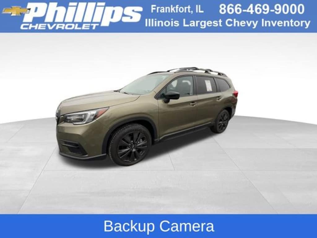 CarBravo Certified, AWD, Panoramic Roof, Backup Camera, Pwr Dr Seat, Navigation, Side Blind Zone Alert, Rear Cross Traffic Alert, Lane Departure Warning, Lane Keep Assist, Adaptive Cruise Control, Heated Seats, Heated Steering Wheel, Power Liftgate, Apple CarPlay, 20 Wheels, Carfax Buyback Guarantee, Option Package 22, Autumn Green Metallic, Ascent Onyx Edition, 4D Sport Utility, 2.4L 4-Cylinder DOHC 16V, Lineartronic CVT, AWD, Autumn Green Metallic, Gray w/StarTex Upholstery, 3rd row seats: bench, 4-Wheel Disc Brakes, ABS brakes, Auto-Dimming Exterior Mirror w/Approach Light, Auto-Dimming Mirror w/Compass & HomeLink, Auto-dimming Rear-View mirror, Axle Ratio: 4.44, Brake assist, Bumpers: body-color, Cargo Area Cover, Compass, Driver door bin, Driver vanity mirror, Dual front impact airbags, Dual front side impact airbags, Dual Glass Panoramic Power Moonroof, Electronic Stability Control, Emergency communication system: STARLINK Safety and Security (Subscription Required), Exterior Parking Camera Rear, Four wheel independent suspension, Front anti-roll bar, Front Bucket Seats, Front Center Armrest, Front dual zone A/C, Front reading lights, Fully automatic headlights, Garage door transmitter: HomeLink, Heated door mirrors, Heated Front Bucket Seats, Heated steering wheel, Illuminated entry, Knee airbag, Low tire pressure warning, Navigation System, Occupant sensing airbag, Outside temperature display, Overhead airbag, Overhead console, Panic alarm, Passenger door bin, Passenger vanity mirror, PMR + Navi + TC, Power door mirrors, Power driver seat, Power Liftgate, Power steering, Power windows, Radio: Subaru STARLINK 8.0 Multimedia Nav System, Rear air conditioning, Rear anti-roll bar, Rear reading lights, Rear window defroster, Rear window wiper, Reclining 3rd row seat, Remote keyless entry, Security system, Speed control, Split folding rear seat, Spoiler, STARLINK/Apple CarPlay/Android Auto, StarTex Upholstery, Steering wheel mounted audio controls, Tachometer, Telescoping steering wheel, Tilt steering wheel, Traction control, Trip computer, Variably intermittent wipers, Wheels: 20 x 7.5 J Black Finish Alloy. 2022 Subaru Ascent Autumn Green Metallic Onyx Edition 4D Sport Utility AWD Lineartronic CVT 20/26 City/Highway MPG 2.4L 4-Cylinder DOHC 16V