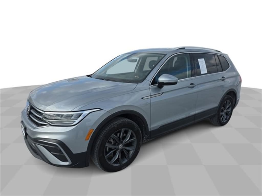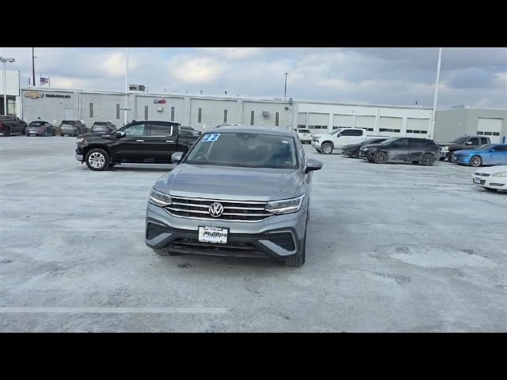 Carbravo Certified, One Owner, Carfax- Accident Free, Keyless Entry, Auto Check - Accident free, AWD, Back Up Camera, Bluetooth, Cruise Control, Power Locks, Power Windows, Carfax Buyback Guarantee, Tiguan 2.0T SE, 4D Sport Utility, 2.0L TSI DOHC, 8-Speed Automatic with Tiptronic, AWD, Pyrite Silver Metallic, Titan Black w/Perforated V-Tex Leatherette Seating Surfaces, 3.33 Axle Ratio, 4-Wheel Disc Brakes, 4-Wheel Independent Suspension, 6 Speakers, ABS brakes, Air Conditioning, Auto-dimming Rear-View mirror, Automatic temperature control, Brake assist, Bumpers: body-color, Compass, Driver door bin, Driver vanity mirror, Dual front impact airbags, Dual front side impact airbags, Electronic Stability Control, Emergency communication system: Car-Net, Exterior Parking Camera Rear, Four wheel independent suspension, Front anti-roll bar, Front Center Armrest, Front dual zone A/C, Front reading lights, Fully automatic headlights, Heated door mirrors, Heated Front Comfort Seats, Illuminated entry, Leather Shift Knob, Low tire pressure warning, Occupant sensing airbag, Outside temperature display, Overhead airbag, Overhead console, Passenger door bin, Passenger vanity mirror, Perforated V-Tex Leatherette Seating Surfaces, Power door mirrors, Power driver seat, Power Liftgate, Radio data system, Radio: MIB3 Composition Media AM/FM/HD, Rain sensing wipers, Rear anti-roll bar, Rear reading lights, Rear seat center armrest, Rear window defroster, Rear window wiper, Remote keyless entry, Roof rack: rails only, Security system, Speed control, Speed-sensing steering, Split folding rear seat, Spoiler, Steering wheel mounted audio controls, Tachometer, Telescoping steering wheel, Tilt steering wheel, Traction control, Trip computer, Turn signal indicator mirrors, Variably intermittent wipers, Wheels: 18 Dark Graphite 10-Spoke Alloy. CARFAX One-Owner. Clean CARFAX. Certified. Pyrite Silver Metallic 2022 Volkswagen Tiguan 2.0T SE AWD 8-Speed Automatic with Tiptronic 2.0L TSI DOHC