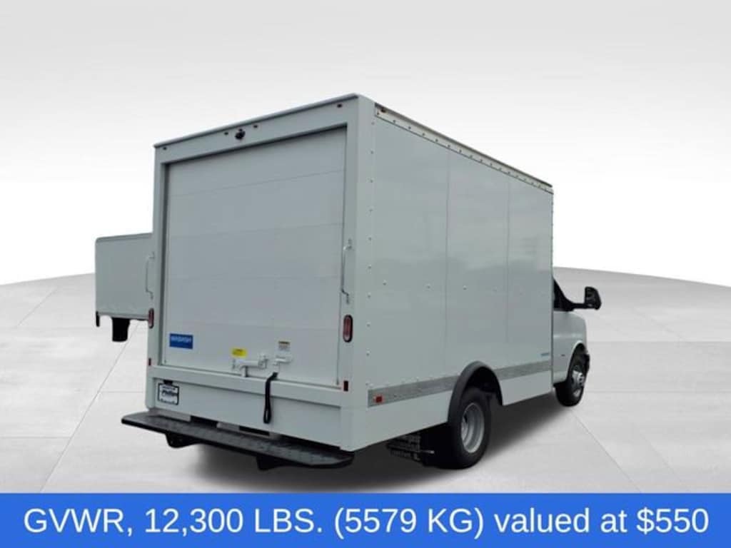 2025 Chevrolet Express Cutaway, 6.6L v8 Gas, dual rear wheel, 12,300 LB GVWR. Wabash 12'L x 96''W x 79''H Supreme Spartan Cargo body with roll up rear door.