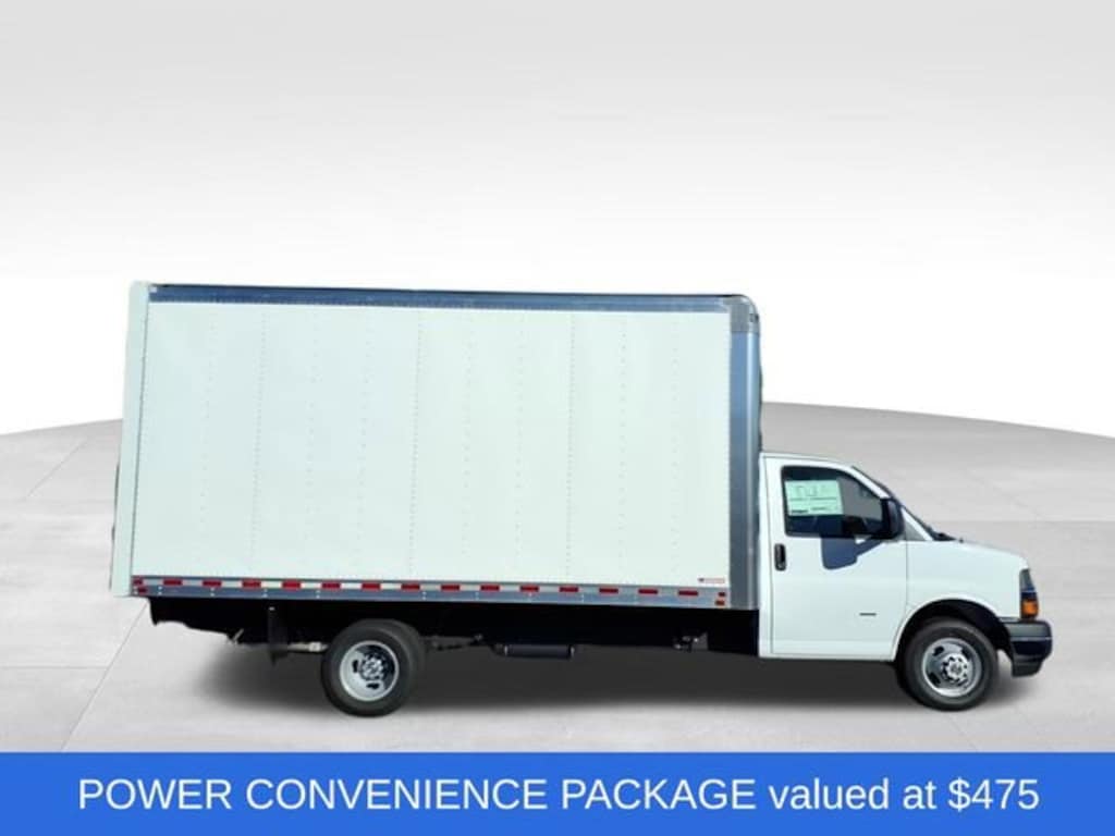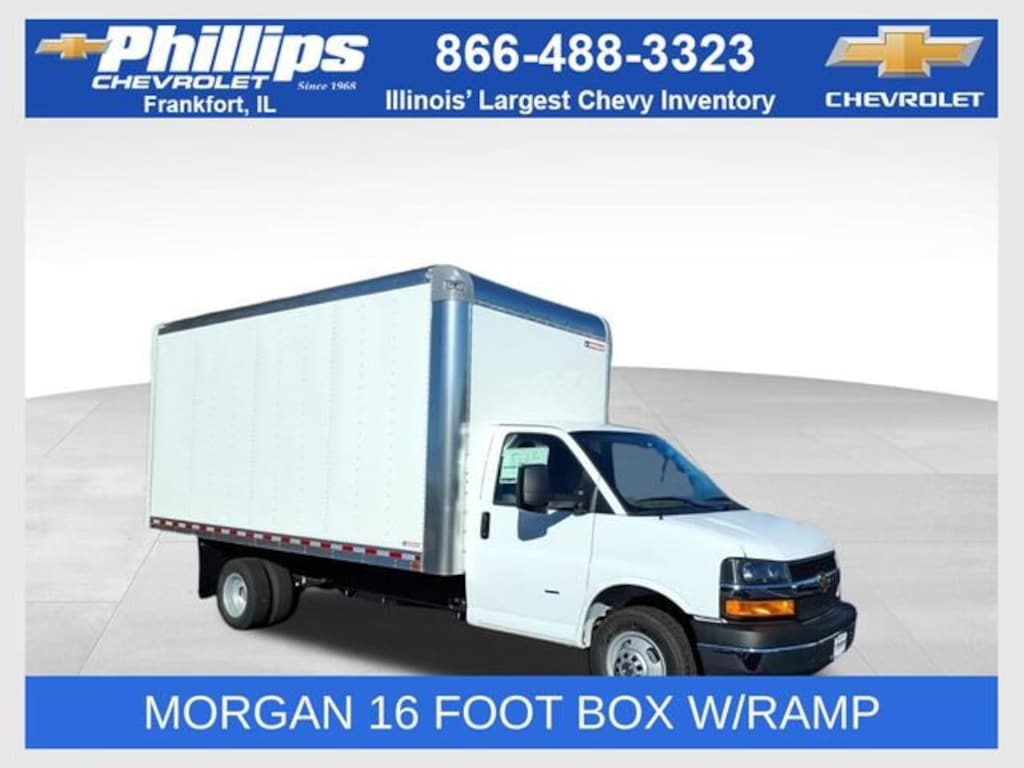 2025 Chevrolet Express Cutaway 3500. 6.6L v8 gas, 12,300LB GVWR. Driver and power convenience package. Morgan 16' Aluminum sheet and post Box truck with ramp. 16'L x 96''W x 91''H nominal dimensions. 90.63 inside width, 198.49'' inside length. .