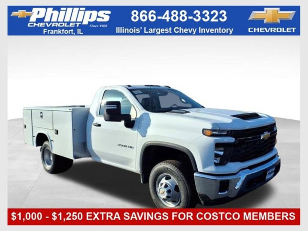 2025 Chevrolet Silverado 3500 regular cab 4wd cab chassis, 6.6L Duramax Turbo diesel. GVWR 14,000 LBS Knapheide 9' Service body with master slide locks.Everything we do at Phillips Chevrolet begins and ends with our goal of providing our guests with the best car-buying experience possible. One Person. One Hour. Fast & Easy.