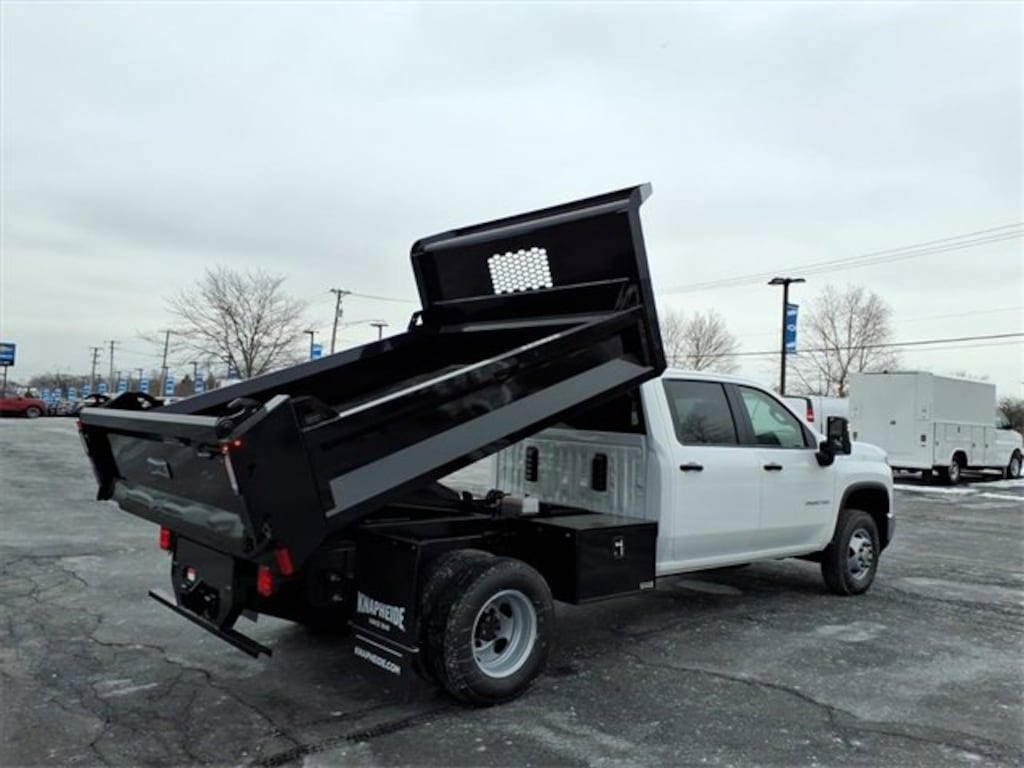 2026 Chevrolet Silverado 3500 Crew Chassis Cab WT 4wd 6.6L V8 Gas. Summit white, Dual rear wheel, 14,000 LB GVWR. Snow plow prep, heated trailering mirrors, upfitter switch kit, rear camera kit. 9' Knapheide KDBDS916 steel Dump body with 16'' high drop sides. Trailering equipment. 20,000 lb hitch capacity.