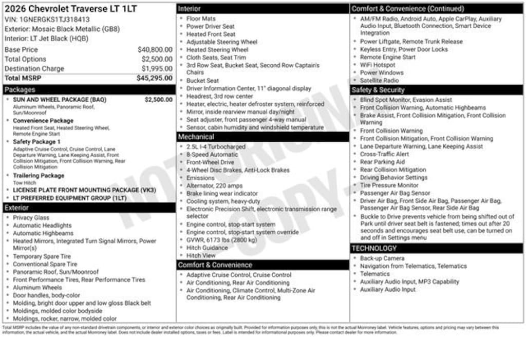 New 2026 ChevroletTraverse LT