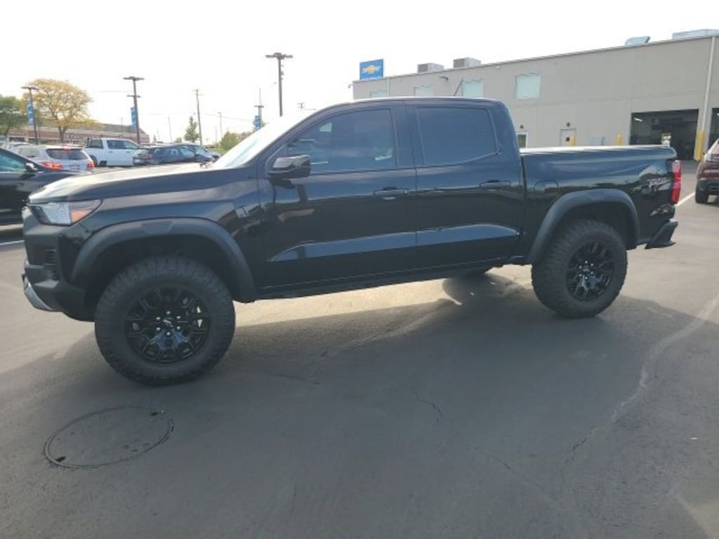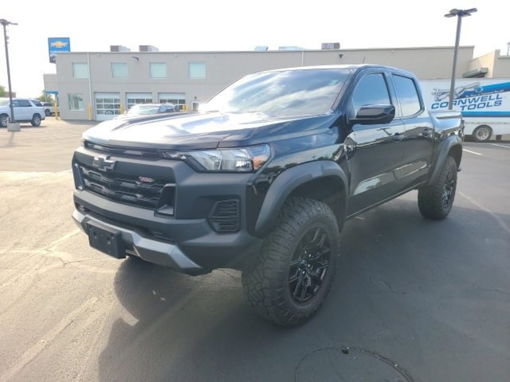 CarBravo Certified, 4WD, Trailering Package, Backup Camera, Pwr Dr Seat, Forward Collision Alert, Navigation, Side Blind Zone Alert, Rear Cross Traffic Alert, Adaptive Cruise Control, Apple CarPlay, Aluminum Wheels, Carfax Buyback Guarantee, Colorado Trail Boss, 4D Crew Cab, 2.7L Turbo, 8-Speed Automatic, 4WD, Black, Jet Black w/Cloth Seat Trim, 220 Amp Generator, 3.42 Rear Axle Ratio, 4-Way Manual Passenger Seat Adjuster, 4-Wheel Disc Brakes, 6-Speaker Audio System Feature, 8-Way Power Driver Seat Adjuster, ABS brakes, Adaptive Cruise Control, Advanced Trailering Package, Air Conditioning, AM/FM radio: SiriusXM, Apple CarPlay/Android Auto, Auto High-beam Headlights, Automatic Emergency Braking, Black Painted Mirror Caps, Blind Zone Steering Assist, Brake assist, Chevy Safety Assist, Cloth Seat Trim, Compass, Delay-off headlights, Driver door bin, Driver vanity mirror, Dual front impact airbags, Dual front side impact airbags, Electronic Automatic Cruise Control, Electronic Stability Control, EZ-Lift & Lower Tailgate, Following Distance Indicator, Forward Collision Alert, Front anti-roll bar, Front Bucket Seats, Front Center Armrest, Front License Plate Kit, Front Pedestrian & Bicyclist Braking, Front wheel independent suspension, HD Surround Vision, Heated Power-Adjustable Outside Mirrors, Heavy-Duty Trailering Package, Illuminated entry, Integrated Trailer Brake Controller, IntelliBeam Automatic High Beam On/Off, Lane Keep Assist w/Lane Departure Warning, Low tire pressure warning, Manual Rear-Sliding Window, Navigation System, Occupant sensing airbag, Outside temperature display, Overhead airbag, Overhead console, Passenger vanity mirror, Power door mirrors, Power Driver Lumbar Control Seat Adjuster, Preferred Equipment Group 0TR, Radio data system, Radio: 11.3 Diagonal Advanced Color LCD Display, Rear Cross Traffic Braking, Rear Park Assist, Rear Pedestrian Alert, Rear reading lights, Rear step bumper, Rear-Window Electric Defogger, Remote keyless entry, Safety Package, Security system, SiriusXM Radio, Speed-sensing steering, Split folding rear seat, Steering Wheel Mounted Audio Controls, Steering wheel mounted audio controls, StowFlex Tailgate Storage Compartment, Tachometer, Tailgate Keyed Cylinder Lock, Technology Package, Tilt steering wheel, Traction control, Trail Boss Convenience Package, Trail Boss Convenience Package II, Trailering App, Trip computer, Variably intermittent wipers, Wheels: 18 x 8.5 Black High Gloss Aluminum, Wireless Phone Projection. 2023 Chevrolet Colorado Black Trail Boss 4D Crew Cab 4WD 8-Speed Automatic 2.7L Turbo