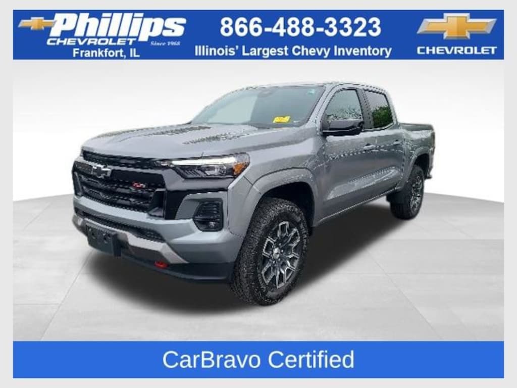 CarBravo Certified, 4WD, Trailering Package, Backup Camera, Remote Start, Pwr Dr Seat, Navigation, Heated Seats, Apple CarPlay, Aluminum Wheels, Carfax Buyback Guarantee, Colorado Z71, 4D Crew Cab, 2.7L I4 Turbocharged DOHC 16V LEV3-ULEV50 310hp, 8-Speed Automatic, 4WD, Sterling Gray Metallic, Jet Black/Adrenaline Red w/Cloth/Evotex Seat Trim, 4-Wheel Disc Brakes, 6-Speaker Audio System Feature, 8-Way Power Driver Seat Adjuster, ABS brakes, Air Conditioning, AM/FM radio: SiriusXM, Apple CarPlay/Android Auto, Auto High-beam Headlights, Brake assist, Bumpers: body-color, Chevy Safety Assist, Cloth/Evotex Seat Trim, Compass, Dual-Zone Automatic Air Conditioning, Electronic Automatic Cruise Control, Electronic Stability Control, EZ-Lift & Lower Tailgate, Following Distance Indicator, Forward Collision Alert, Front Bucket Seats, Front Center Armrest, Front fog lights, Front License Plate Kit, Front Passenger Seatback Map Pocket, Front reading lights, Heated door mirrors, Heated Driver & Front Passenger Seats, Illuminated entry, Inside Rear-View Auto-Dimming Mirror, IntelliBeam Automatic High Beam On/Off, Lane Keep Assist w/Lane Departure Warning, Navigation System, Outside temperature display, Overhead console, Passenger door bin, Power door mirrors, Power Driver Lumbar Control Seat Adjuster, Preferred Equipment Group 4Z7, Radio data system, Radio: 11.3 Diagonal Advanced Color LCD Display, Rear step bumper, Rear-Window Electric Defogger, Remote Vehicle Starter System, Security system, SiriusXM Radio, Speed-sensing steering, Split folding rear seat, Steering Wheel Mounted Audio Controls, Steering wheel mounted audio controls, StowFlex Tailgate Storage Compartment, Tachometer, Tailgate Keyed Cylinder Lock, Tilt & Telescoping Steering Column, Tilt steering wheel, Traction control, Trip computer, Variably intermittent wipers, Wheels: 18 x 8.5 Android Dark Full Gloss Aluminum, Wireless Charging, Wireless Phone Projection, Z71 Convenience Package II. 2024 Chevrolet Colorado Sterling Gray Metallic Z71 4D Crew Cab 4WD 8-Speed Automatic 18/23 City/Highway MPG 2.7L I4 Turbocharged DOHC 16V LEV3-ULEV50 310hp