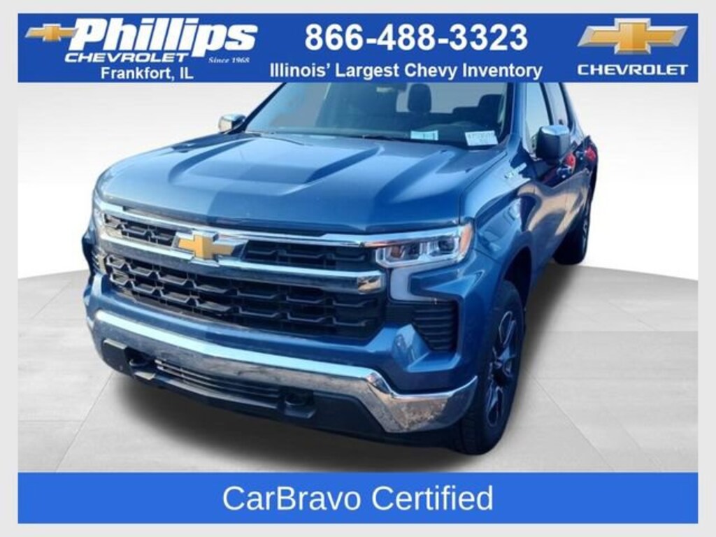 CarBravo Certified, 4WD, Trailering Package, Backup Camera, Remote Start, Pwr Dr Seat, Forward Collision Alert, Heated Seats, Heated Steering Wheel, Apple CarPlay, 20 Wheels, Carfax Buyback Guarantee, Silverado 1500 LT, 4D Crew Cab, 2.7L I4 Turbocharged DOHC 16V LEV3-SULEV30 310hp, 8-Speed Automatic, 4WD, Lakeshore Blue, Jet Black w/Cloth Seat Trim, 10-Way Power Driver Seat w/Lumbar, 12.3 Multicolor Reconfigurable Digital Display, 3.42 Rear Axle Ratio, 4-Wheel Disc Brakes, 40/20/40 Front Split-Bench Seat, 6-Speaker Audio System, ABS brakes, All-Star Edition, AM/FM radio: SiriusXM with 360L, Auto High-beam Headlights, Auto-Locking Rear Differential, Automatic Emergency Braking, Automatic temperature control, Bluetooth® For Phone, Brake assist, Bumpers: chrome, Chevrolet Connected Access Capable, Chrome Mirror Caps, Cloth Seat Trim, Color-Keyed Carpeting Floor Covering, Compass, Convenience Package, Deep-Tinted Glass, Dual Rear USB Ports (Charge Only), Dual-Zone Automatic Climate Control, Electric Rear-Window Defogger, Electrical Steering Column Lock, Electronic Cruise Control, Electronic Stability Control, Following Distance Indicator, Forward Collision Alert, Front Center Armrest w/Storage, Front dual zone A/C, Front Frame-Mounted Black Recovery Hooks, Front Pedestrian Braking, Front reading lights, Fully automatic headlights, HD Rear Vision Camera, Heated door mirrors, Heated Driver & Front Outboard Passenger Seats, Heated Steering Wheel, High Capacity Suspension Package, Hitch Guidance, Illuminated entry, IntelliBeam Automatic High Beam On/Off, Lane Keep Assist w/Lane Departure Warning, LED Cargo Area Lighting, OnStar & Chevrolet Connected Services Capable, Outside temperature display, Overhead console, Passenger door bin, Power door mirrors, Power driver seat, Power Front Windows w/Driver Express Up/Down, Power Front Windows w/Passenger Express Down, Power Rear Windows w/Express Down, Preferred Equipment Group 2FL, Premium audio system: Chevrolet Infotainment 3 Premium, Radio data system, Radio: Chevrolet Infotainment 3 Premium System, Rear 60/40 Folding Bench Seat (Folds Up), Rear step bumper, Remote Vehicle Starter System, Security system, SiriusXM w/360L, Speed-sensing steering, Standard Suspension Package, Steering Wheel Audio Controls, Steering wheel mounted audio controls, Tachometer, Telescoping steering wheel, Theft Deterrent System (Unauthorized Entry), Tilt steering wheel, Traction control, Trailering Package, Trip computer, Variably intermittent wipers, Voltmeter, Wheels: 20 x 9 Painted Aluminum, Wi-Fi Hot Spot Capable, Wrapped Steering Wheel. 2024 Chevrolet Silverado 1500 Lakeshore Blue LT 4D Crew Cab 4WD 8-Speed Automatic 18/21 City/Highway MPG 2.7L I4 Turbocharged DOHC 16V LEV3-SULEV30 310hpRecent Arrival!Certification Program Details: Type your description hereWith the internet today, a great value shouldnât be hard to find. Here at Phillips Chevrolet we do the research for you. We monitor the market daily to ensure our customers are getting the best value achievable. We price all of our vehicles to make the buying process as simple and easy as possible. Our internet prices are just one factor that makes us the #1, #2, and out to be the #3 Chevrolet dealerships in Illinois. The #2 Chevy dealership in Illinois is conveniently located just a one block south of 80/94, at 17730 S Torrence Avenue in Lansing, IL 60438.