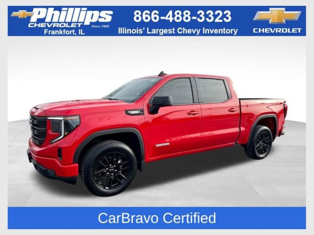 CarBravo Certified, 4WD, Trailering Package, Backup Camera, Pwr Dr Seat, Forward Collision Alert, Navigation, Lane Departure Warning, Lane Keep Assist, Heated Seats, Heated Steering Wheel, Apple CarPlay, 20 Wheels, Carfax Buyback Guarantee, Sierra 1500 Elevation, 4D Crew Cab, 2.7L I4 Turbocharged DOHC 16V LEV3-SULEV30 310hp, 8-Speed Automatic, 4WD, Cardinal Red, Black Cloth, 10-Way Power Driver Seat Adjuster w/Lumbar, 120-Volt Bed Mounted Power Outlet, 120-Volt Interior Power Outlet, 2 Charge/Data USB Ports, 2 Type-C Charge-Only Rear USB Ports, 220 Amp Alternator, 3.42 Rear Axle Ratio, 4-Way Manual Passenger Seat Adjuster, 4-Wheel Disc Brakes, 6-Speaker Audio System Feature, ABS brakes, Air Conditioning, AM/FM radio: SiriusXM with 360L, Apple CarPlay/Android Auto, Auto High-beam Headlights, Auto-Locking Rear Differential, Automatic Emergency Braking, Automatic temperature control, Body Color Header w/Gloss Black Mesh Grille Bars, Brake assist, Buckle to Drive, Bumpers: body-color, Cloth Seat Trim, Color-Keyed Carpeting Floor Covering, Compass, Deep-Tinted Glass, Driver door bin, Driver vanity mirror, Dual front impact airbags, Dual front side impact airbags, Electric Rear-Window Defogger, Electronic Stability Control, Emergency communication system: OnStar, Following Distance Indicator, Forward Collision Alert, Front anti-roll bar, Front Center Armrest w/Storage, Front fog lights, Front Frame-Mounted Black Recovery Hooks, Front Pedestrian Braking, Front reading lights, Front wheel independent suspension, Fully automatic headlights, Genuine wood dashboard insert, HD Rear Vision Camera, Heated door mirrors, Heated Driver & Front Outboard Passenger Seating, Heated steering wheel, High Capacity Suspension Package, Hitch Guidance, Illuminated entry, Integrated Trailer Brake Controller, IntelliBeam Automatic High Beam On/Off, Keyless Open & Start, Lane Keep Assist w/Lane Departure Warning, LED Cargo Area Lighting, Low tire pressure warning, Manual Tilt-Wheel & Telescoping Steering Column, Navigation System, Occupant sensing airbag, OnStar Services Capable, Outside temperature display, Overhead airbag, Overhead console, Passenger door bin, Passenger vanity mirror, Power Door Locks, Power door mirrors, Power driver seat, Power Front Windows w/Driver Express Up/Down, Power Front Windows w/Passenger Express Down, Power Rear Windows w/Express Down, Preferred Equipment Group 3VL, Push Button Start, Radio: Premium GMC Infotainment Audio System, Rear reading lights, Rear seat center armrest, Rear step bumper, Remote Vehicle Starter System, Security system, SiriusXM w/360L Trial Subscription, Speed control, Speed-sensing steering, Split folding rear seat, Steering Wheel Audio Controls, Steering wheel mounted audio controls, Tachometer, Telescoping steering wheel, Theft Deterrent System (Unauthorized Entry), Tilt steering wheel, Traction control, Trailering Package, Trip computer, Variably intermittent wipers, Voltmeter, Wheels: 20 x 9 High Gloss Black Painted Aluminum, Wi-Fi Hotspot Capable, Wireless Apple CarPlay/Wireless Android Auto. 2025 GMC Sierra 1500 Cardinal Red Elevation 4D Crew Cab 4WD 8-Speed Automatic 17/19 City/Highway MPG 2.7L I4 Turbocharged DOHC 16V LEV3-SULEV30 310hp