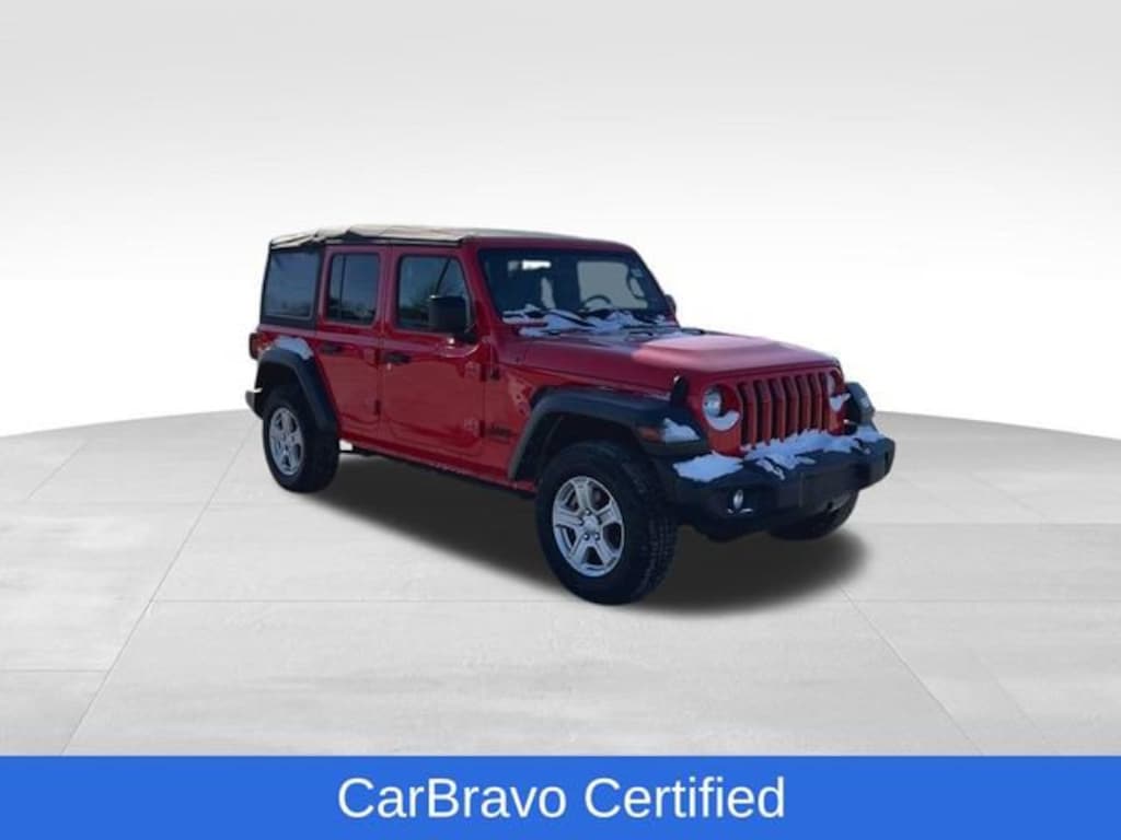 CarBravo Certified, 4WD, Sunrider Soft Top, Backup Camera, Remote Start, Apple CarPlay, Aluminum Wheels, Carfax Buyback Guarantee, Wrangler Unlimited Sport S, 4D Sport Utility, 2.0L I4 DOHC, 8-Speed Automatic, 4WD, Firecracker Red Clearcoat, Black w/Cloth Low-Back Bucket Seats, 110 MPH Vehicle Max Speed Calibration, 2-Door Passive Entry, Front Door Locks, 3.45 Rear Axle Ratio, 4-Wheel Disc Brakes, 8 Speakers, ABS brakes, Air Conditioning w/Auto Temperature Control, Air Filtering, AM/FM radio, Apple CarPlay/Android Auto, Automatic Headlamps, Aux Battery, Brake assist, Cloth Low-Back Bucket Seats, Cluster 7.0 TFT Color Display, Compass, Convenience Group, Deep Tint Sunscreen Windows, Delay-off headlights, Driver door bin, Driver vanity mirror, Dual front impact airbags, Dual front side impact airbags, Electronic Stability Control, Engine Oil Cooler, Front 1-Touch Down Power Windows, Front anti-roll bar, Front Center Armrest w/Storage, Front fog lights, Front reading lights, Integrated roll-over protection, Leather Wrapped Steering Wheel, Low tire pressure warning, Normal Duty Suspension, Occupant sensing airbag, Outside temperature display, ParkView Rear Back-Up Camera, Passenger door bin, Passenger vanity mirror, Power Heated Mirrors, Quick Order Package 22S Sport S, Radio data system, Radio: Uconnect 4 w/7 Display, Rear anti-roll bar, Rear reading lights, Remote Keyless Entry, Security Alarm, SiriusXM Satellite Radio, Speed control, Speed Sensitive Power Locks, Split folding rear seat, Sport S, Steering wheel mounted audio controls, Stop-Start Dual Battery System, Sun Visors w/Illuminated Vanity Mirrors, Tachometer, Technology Group, Telescoping steering wheel, Tilt steering wheel, Traction control, Trip computer, Universal Garage Door Opener, Variably intermittent wipers, Wheels: 17 x 7.5 Tech Silver Aluminum. 2022 Jeep Wrangler Firecracker Red Clearcoat Unlimited Sport S 4D Sport Utility 4WD 8-Speed Automatic 21/24 City/Highway MPG 2.0L I4 DOHC